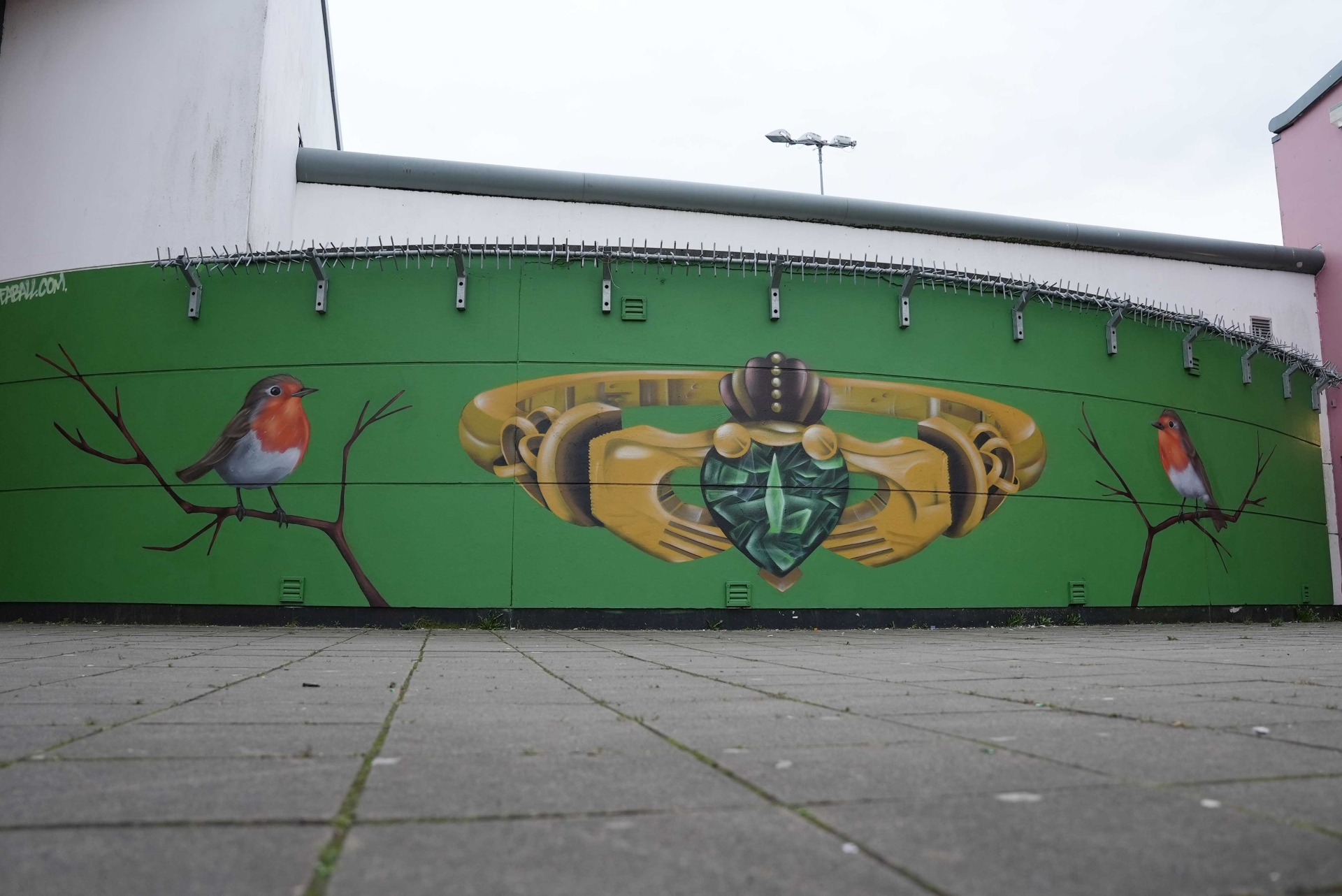 The latest artwork features the traditional Irish Claddagh ring, representing love, friendship and loyalty, accompanied by two native birds.