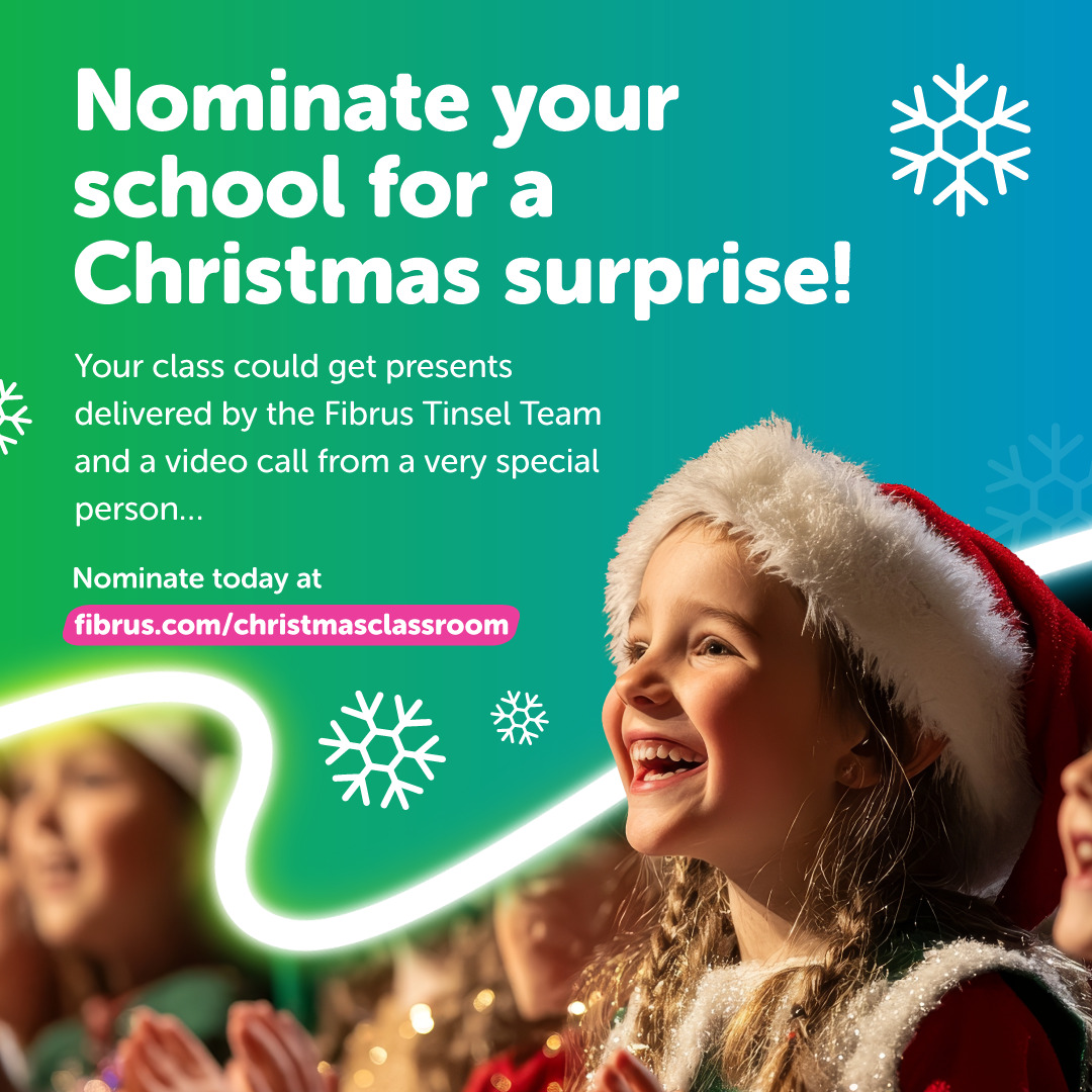 Fibrus Broadband is giving the opportunity to schools across Northern Ireland to nominate their Primary One, Primary Two, or P1/P2 composite classes to receive a festive visit from Santa and the Fibrus Tinsel Team this Christmas.