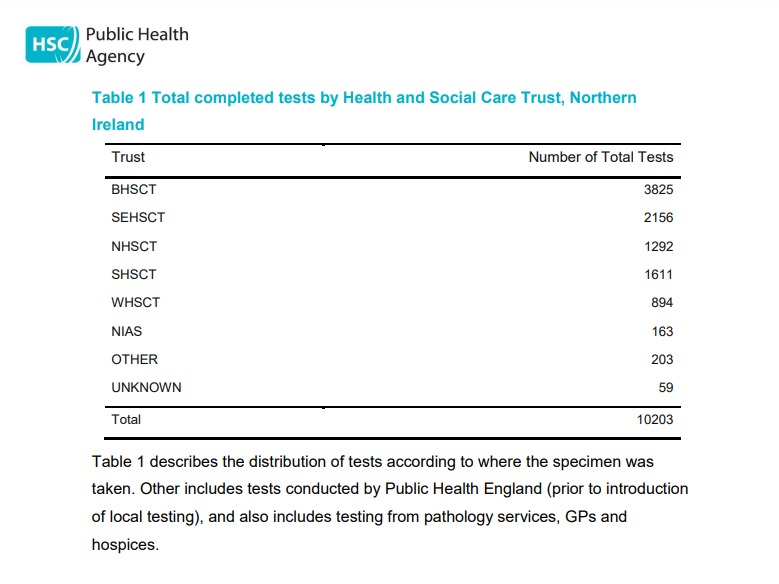 The Western Trust has carried out the lowest number of tests of any Trust area to date.