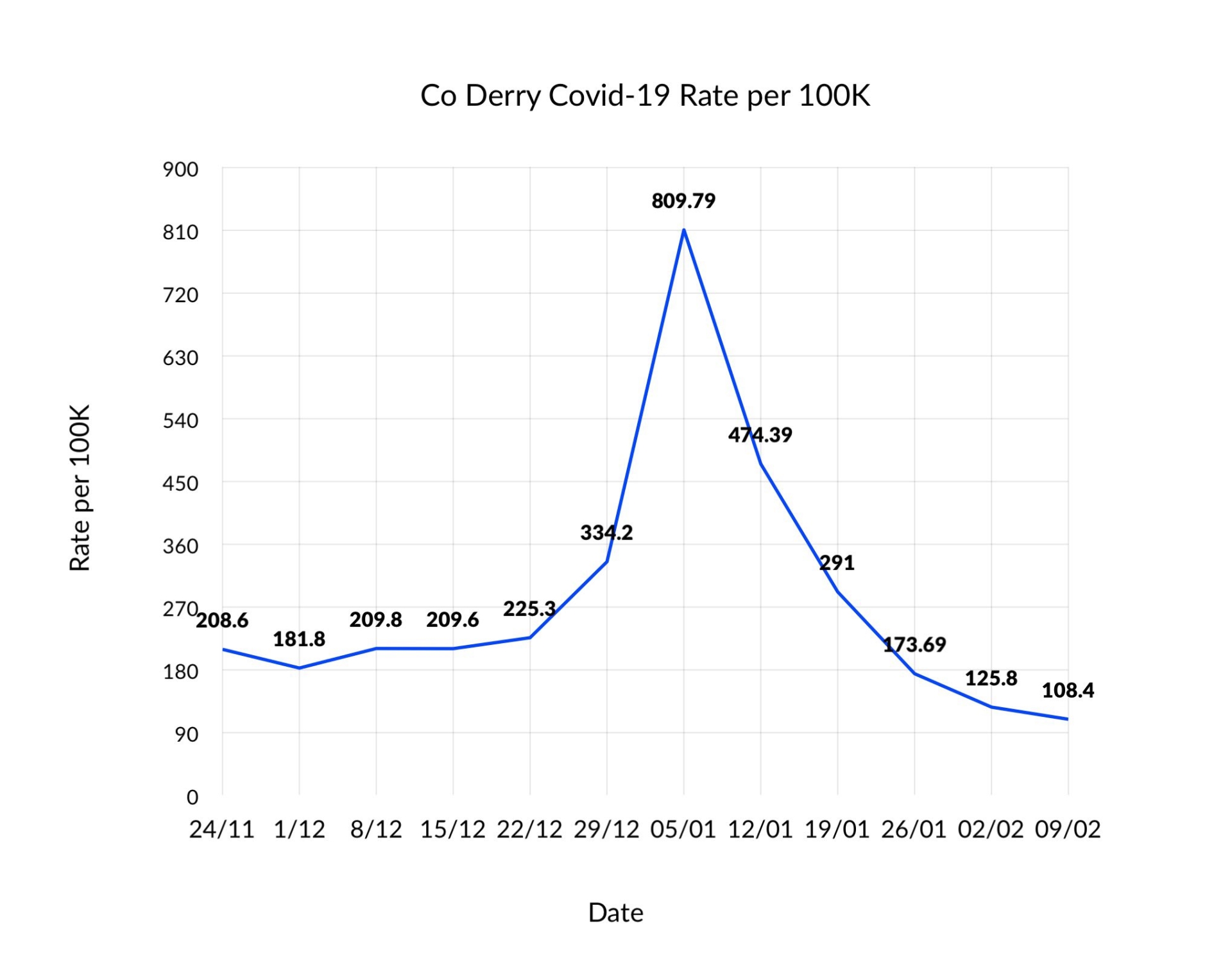 Twelve Covid-related deaths have been recorded across Derry's three council areas over the last seven days, a redution on the previous week's total of 25.