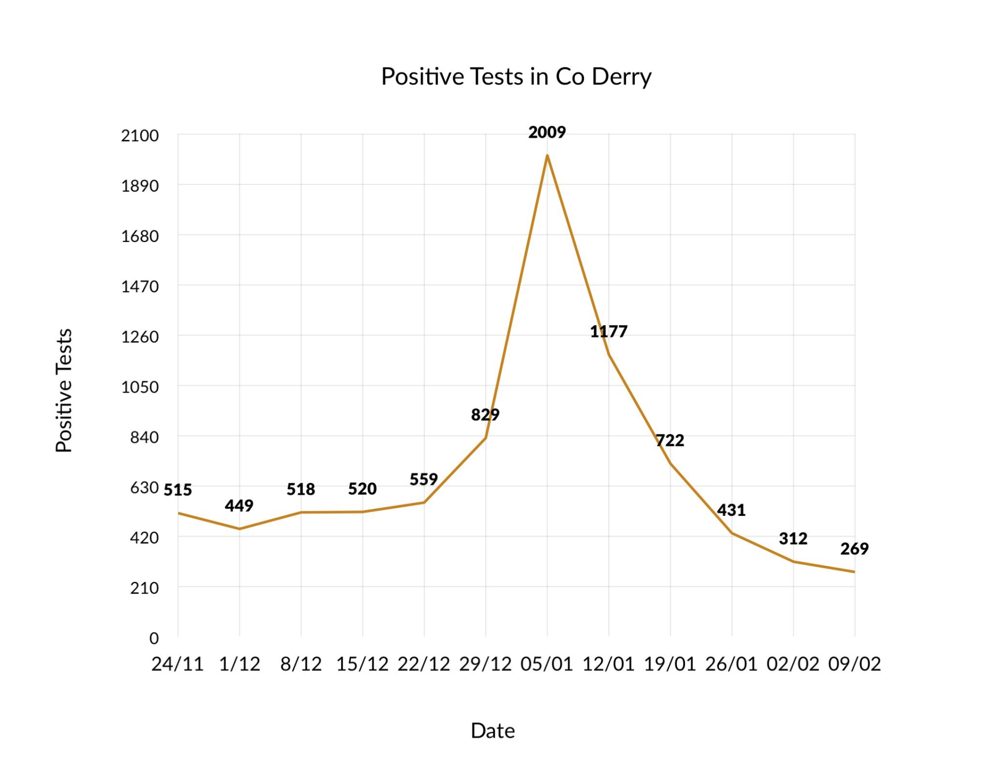 There was a 13.8% reduction in the number of positive cases in the county over the last seven days, a slower fall than the week beginning February 1 (27.6%) and January 25 (40.3%).
