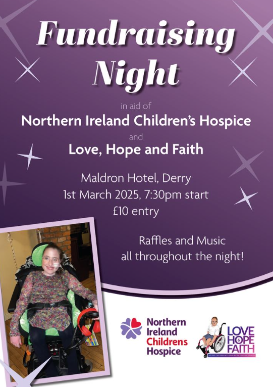 All money raised on the night at the fundraiser will be split in half between the two charities, with both the Northern Ireland Children’s Hospice and Love Hope and Faith having helped countless children and families in Derry.