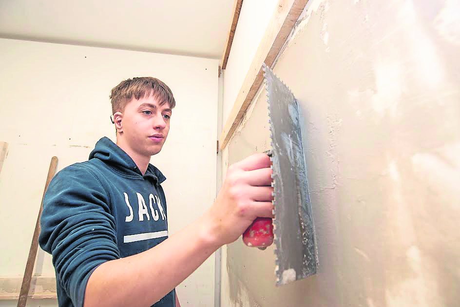 Plastering student Mark McCorkell at work in Springtown. Campus.