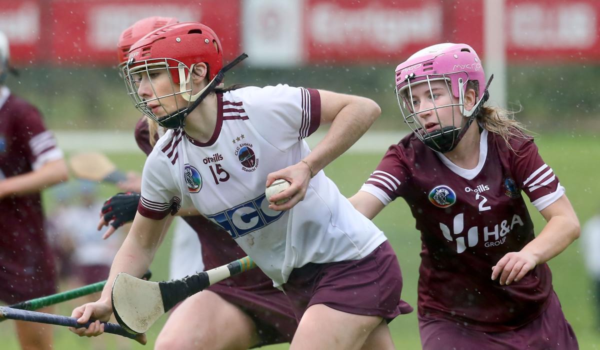 Slaughtneil Therese Mellon with Erin Kelly of Ballinascreen during the Derry Senior Camogie Championship semi-final match played at Owenbeg on Sunday. Picture Margaret McLaughlin.