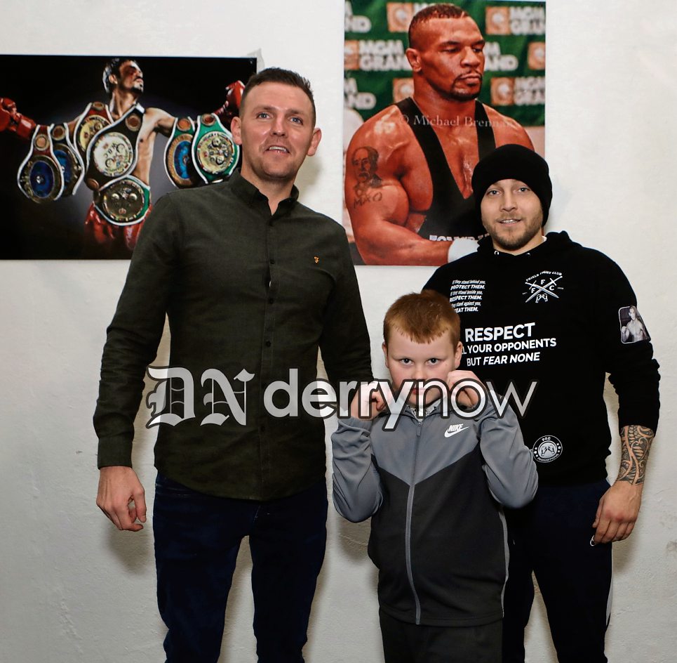Paddy Friel and Colin Moore, with young boxer Mason McKinney.