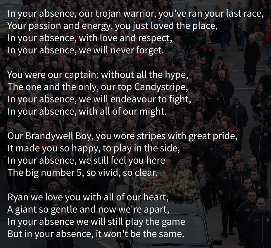 In an emotional poem Derry City manager Kenny Shiels told those gathered: "Ryan we love you with all of our heart. A giant so gentle, and now we’re apart. In your absence we will still play the game, but in your absence, it won’t be the same.”