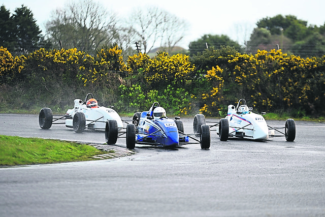 This time Celbridge driver, Jason Smyth, made no mistakes, apart from a fluffed start. Once he got going properly, he was passing for fun. First it was Dave Parks, from Ballina. Then it was Morgan Quinn, from Kill. Next it was multiple FF1600 Champion, David McCullough from Ballymena. Finally, on lap nine, he took the lead from another young hot-shoe, Jordan Kelly, from Ballymagan. He was never headed after that. Unfortunately, on lap thirteen, Kelly’s car let him down and Quinn inherited second place. McCullough was third.