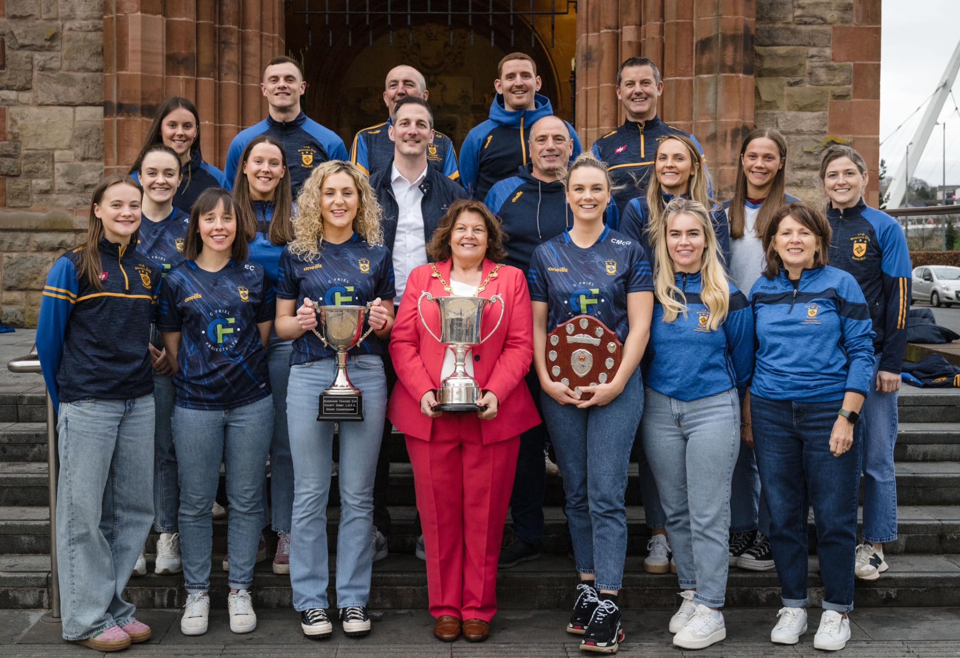 The Mayor of Derry and Strabane, Councillor Patricia Logue players, management and club officials at the reception.