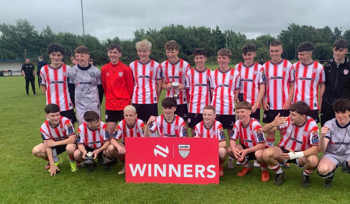 Derry City U15s celebrate their victory.