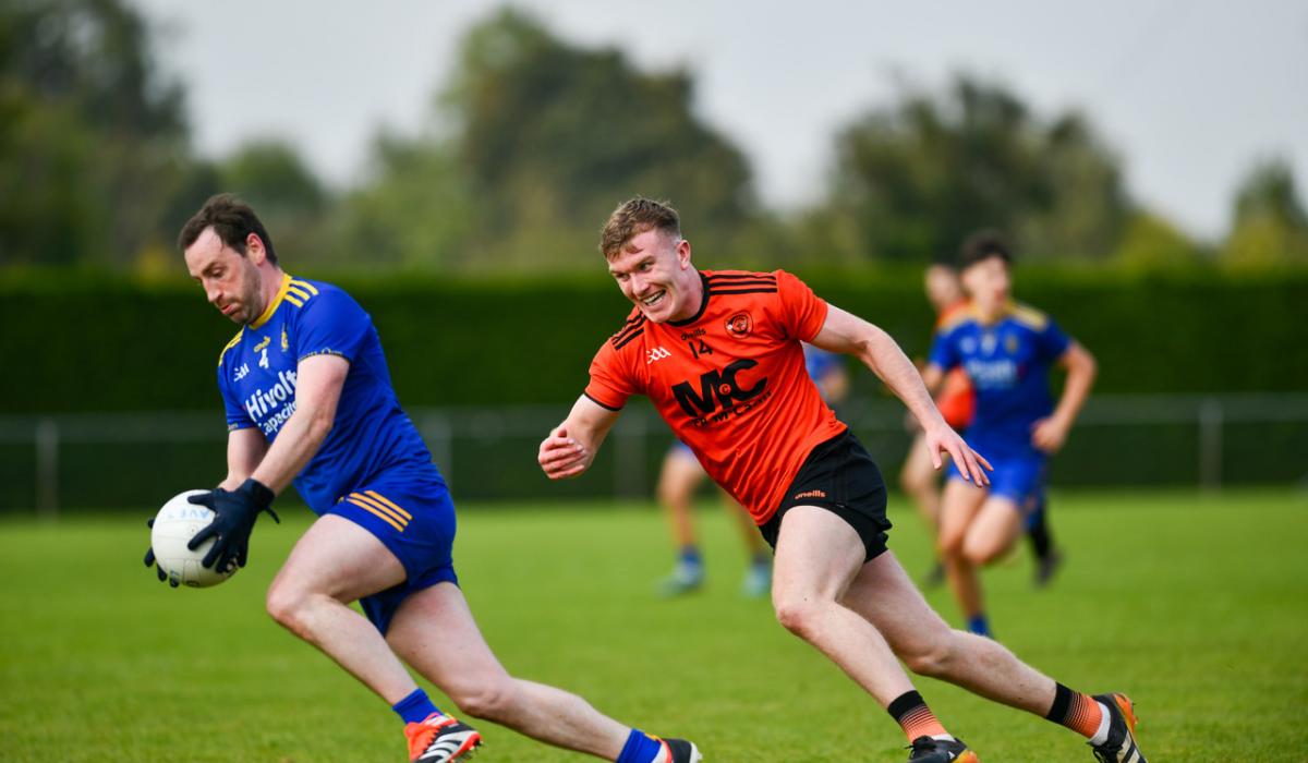 Gerard Walsh breaks away from Dual player Fintan Bradley. Pic by Colm Heron.