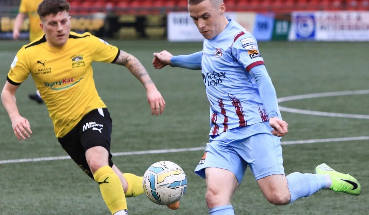 ‘Stute came so close to scoring a picture-perfect goal just minutes later when Sean Carlin placed a precision pass down the right for Conor Quigley to run onto, and his drilled cross was headed straight to the head of Benny McLaughlin until goalkeeper Jason Craughwell got a vital hand to it to take it away from him.