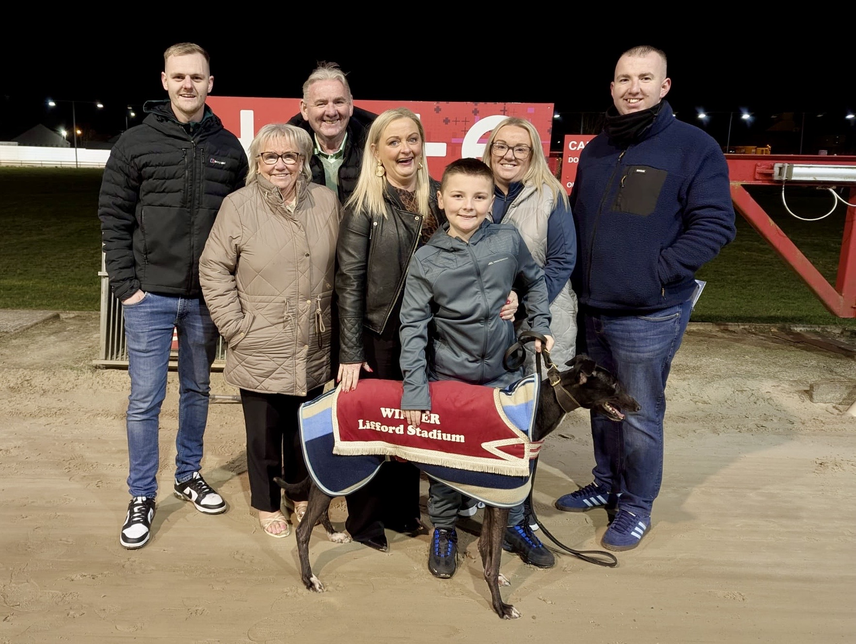 That said, he never looked like being beaten as he broke well from trap one, before showcasing a lovely turn of early speed to immediately draw clear of his rivals. Indeed, the classy blue-brindle never broke his stride around the bottom two bends and he powered up the Lifford hill to emerge just shy of eight lengths clear of Crokers Brian in second. The time, on a sticky surface, was a brilliant 17.66.