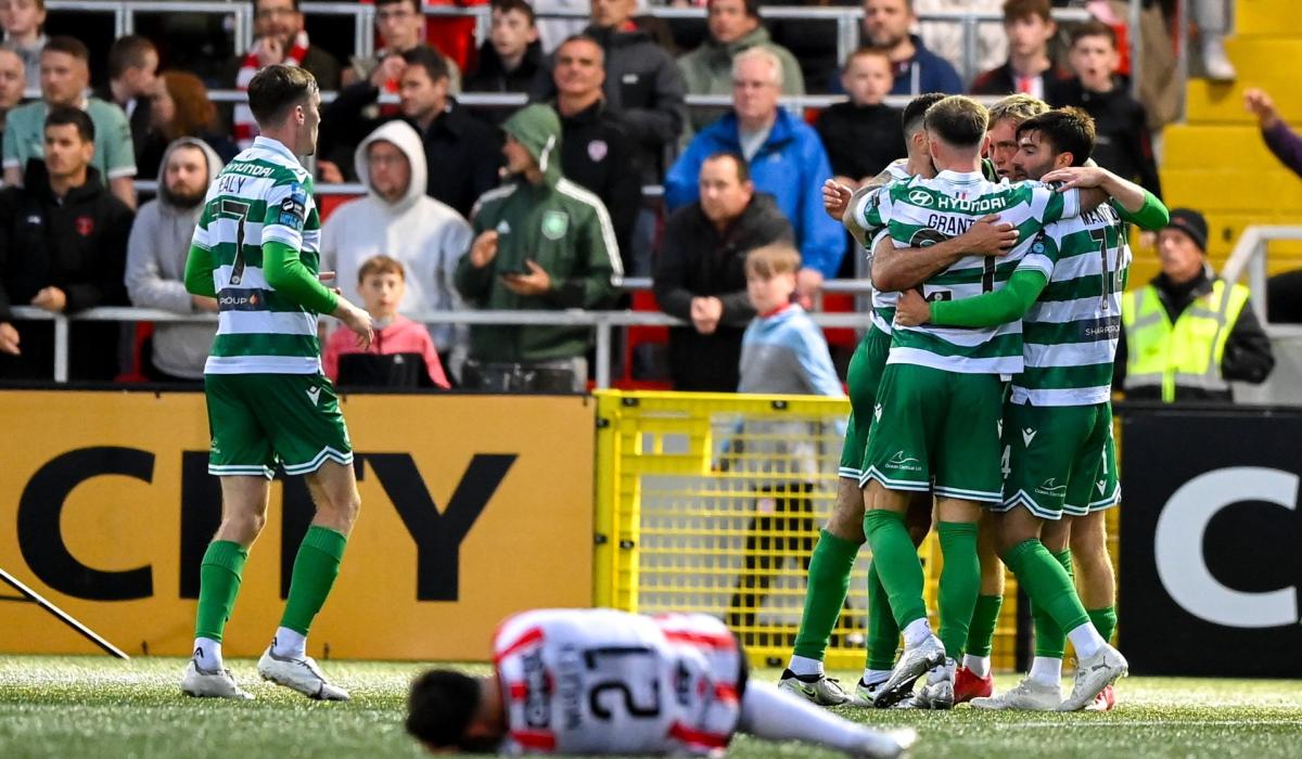 Shamrock Rovers came from behind to win at the Brandywell, with former Derry City star Aaron McEneff scoring a last-minute winner.