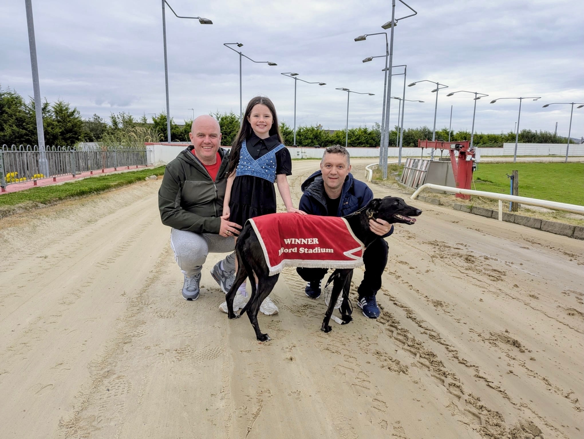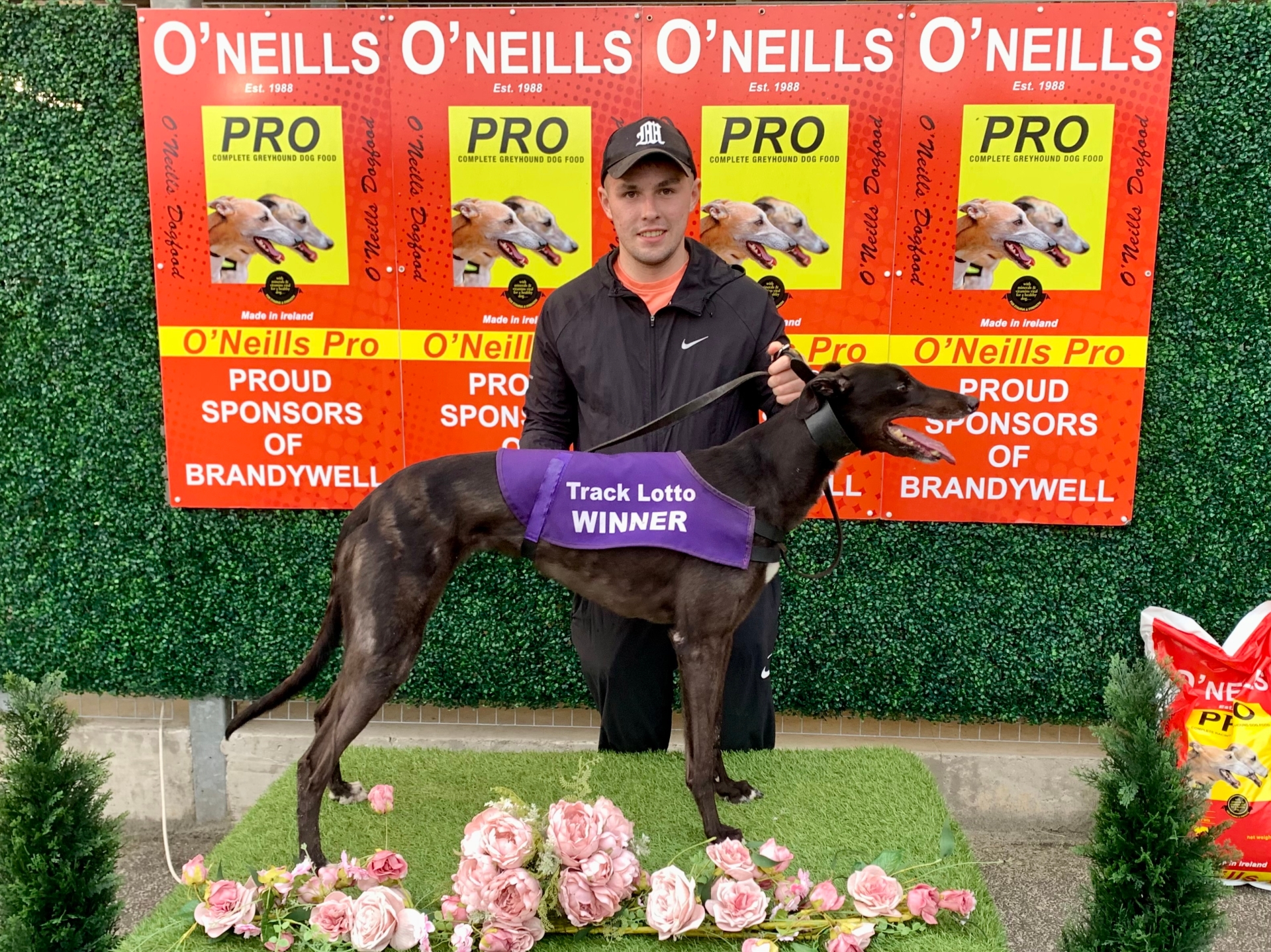 Heat 1 of the Johnny McLaughlin Memorial Sprint went to Thomas Mullan’s Luminous Nelly (Serene Ace x Likely Gift, Sep ’23), a purchase from the Kilkenny Sales in May who is improving with every race.