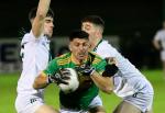 Newbridge’s Conor McGrogan snatches the ball from Dunloy’s Eoin O’Neill in the 2025 Ulster Club Senior Football Round 1 at Owenbeg on Saturday. (Photo - Tom Heaney, nwpresspics)