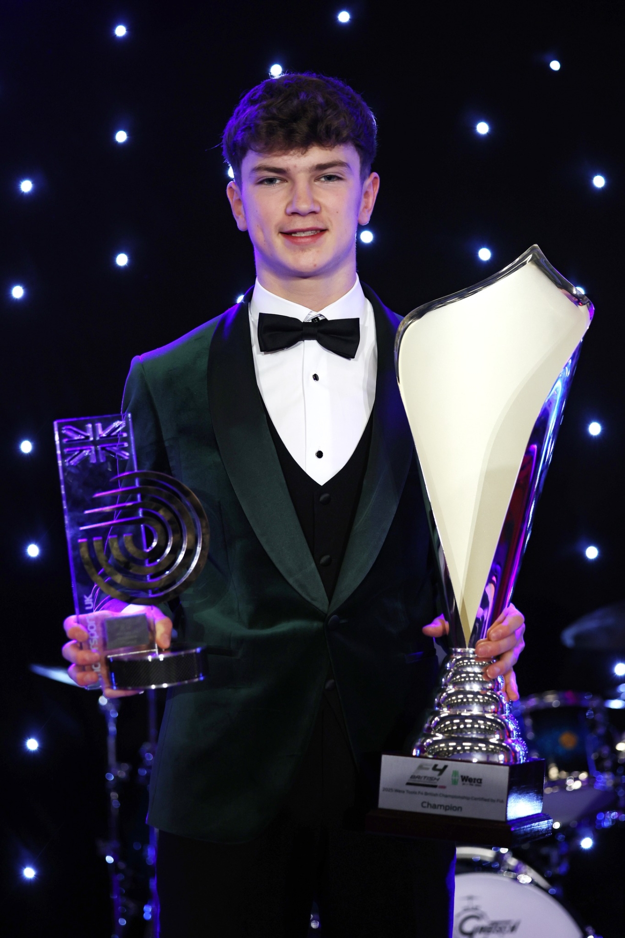 County Derry's Fionn McLaughlin was officially presented with his coveted Wera Tools British F4 champion’s trophy at the prestigious 2025 TOCA Awards ceremony, held at Silverstone Circuit on Saturday evening.