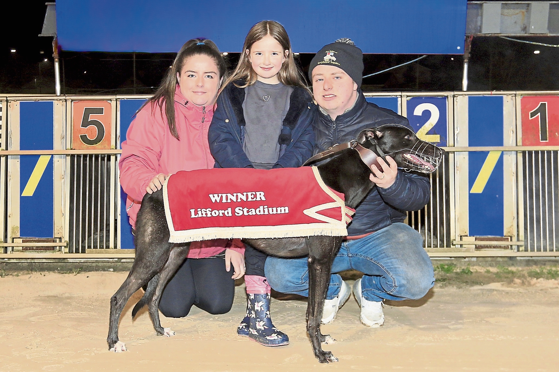 It was the David Park show on Sunday at Lifford as he landed a fantastic treble in Races 2, 3 and 6. First up was his home bred Lotus Frank (Magical Bale x Wee Tee, Apr ’24) who won the JD Print A7 525 in 29.99.