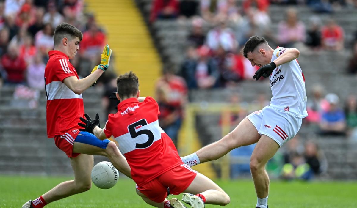 TYRONE: Conor McAneney; Joey Clarke, Ben Hughes, Conor Devlin; Barry McMenamin, Callum Daly, Nathan Farry; Conan Devlin, Conor O’Neill; Sean Hughes (0-1), Eoin McElholm (2-1), Caolan Donnelly (1-0); Noah Grimes (0-2, 1f), Ronan Molloy (1-1), Michael McElhatton (0-2).