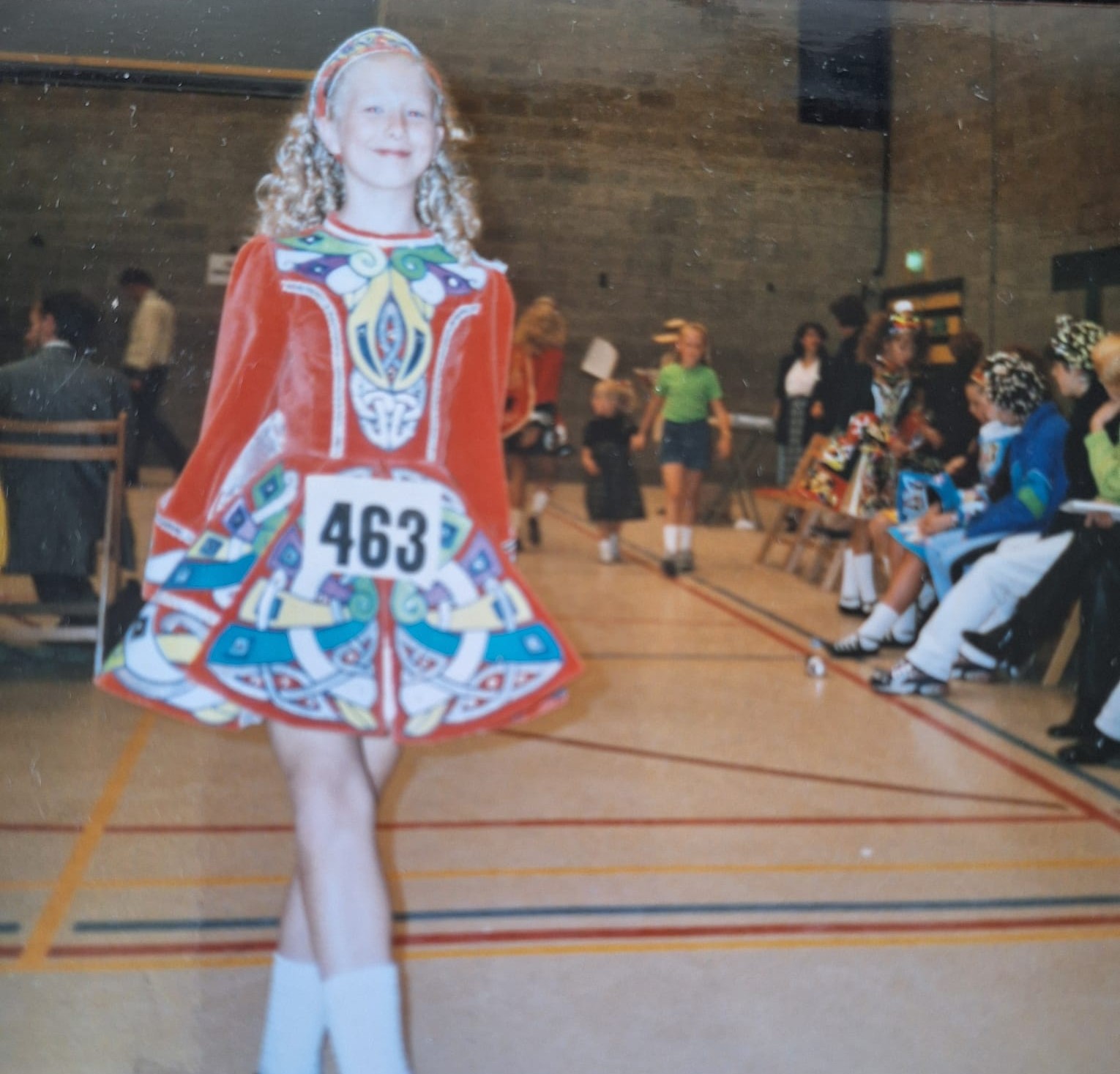 Eamonn’s daughter Emma Bradley pictured in her Irish dancing days.
