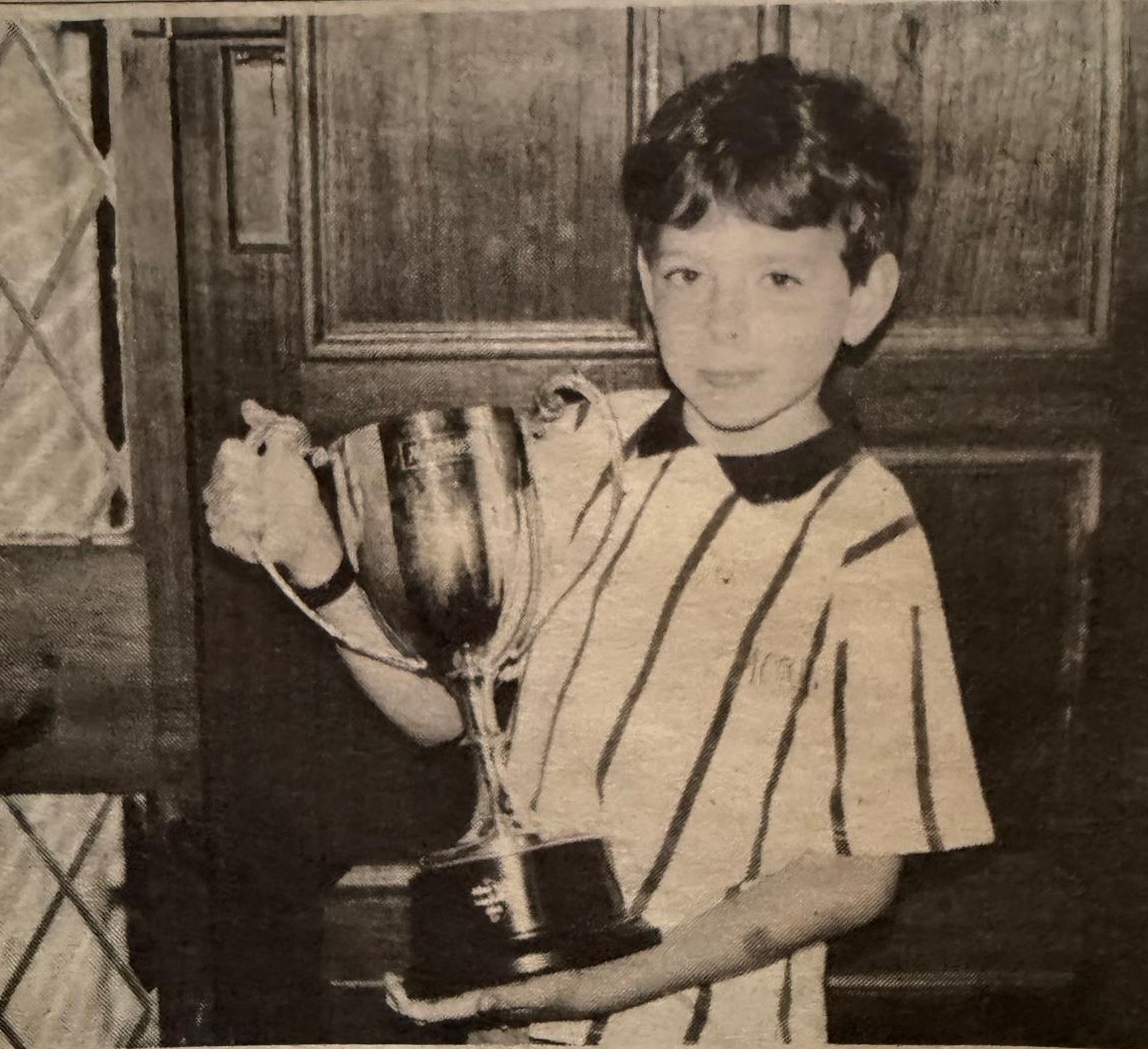 Ciaran’s competitive exploits weren’t confined to feiseanna. Here he is in 1995 pictured with the cup he won in the Grand Final of the Junior Section at the Mosney Talent Show.