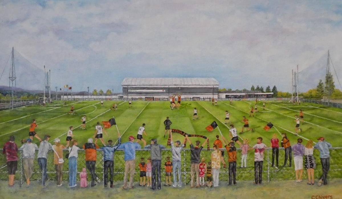 supporters are imagined, although I did model two of the younger supporters on Eimear and Aodhan my grandchildren, who are underage players and keen fans.”