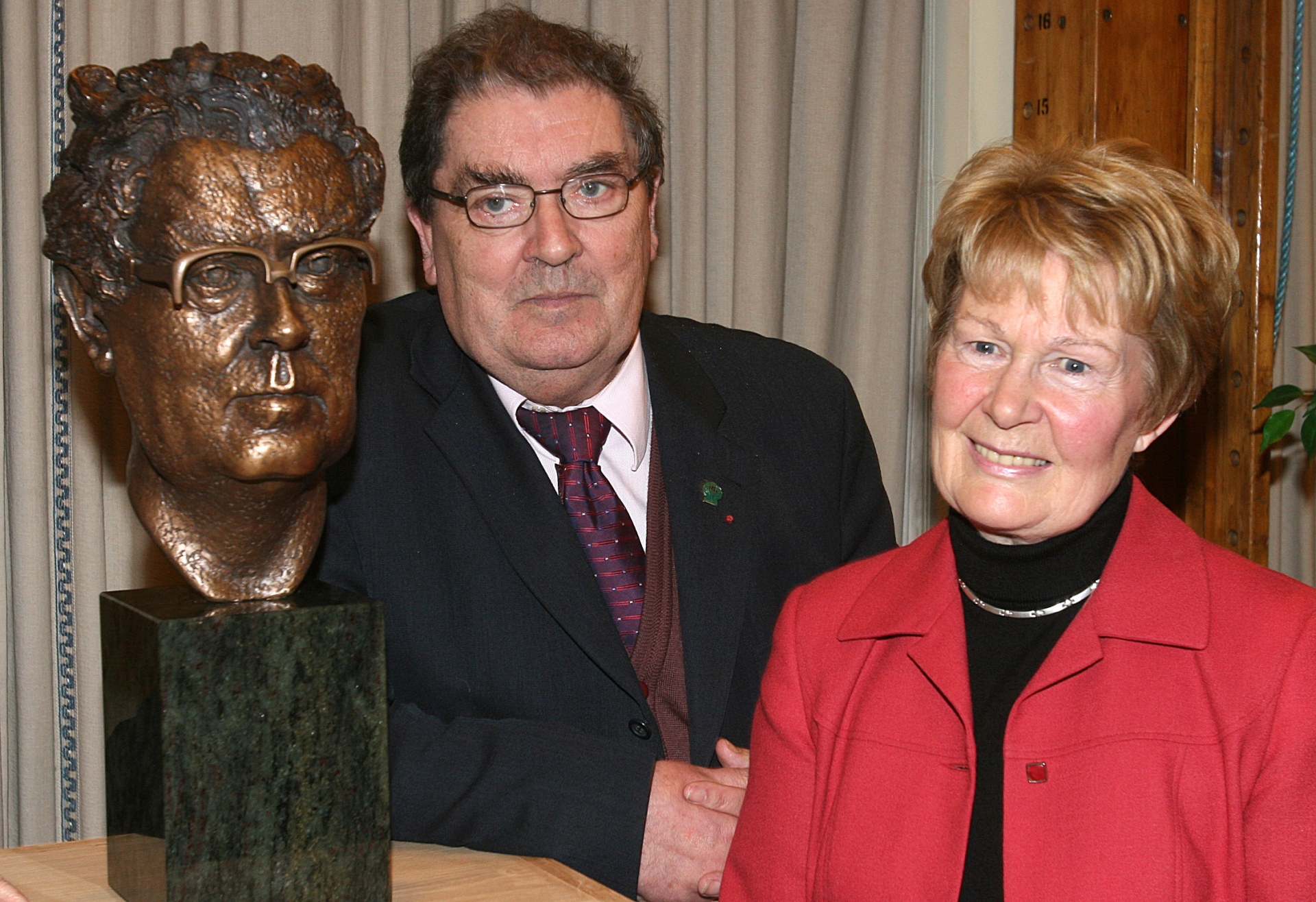 A bust made in the Derry man’s honour rests between two gentlemen who excelled in their own fields in Seamus Heaney and Brian Friel.