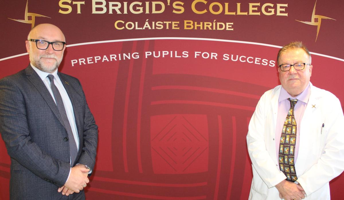 Jim Zammitt (right), pictured with St Brigid's College principal Mr Pádraig O’Mianáin, is retiring after four decades at the school.