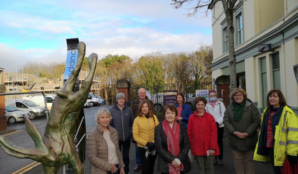 Members of Dungiven Regeneration Club with artist Sara Cunningham-Bell.