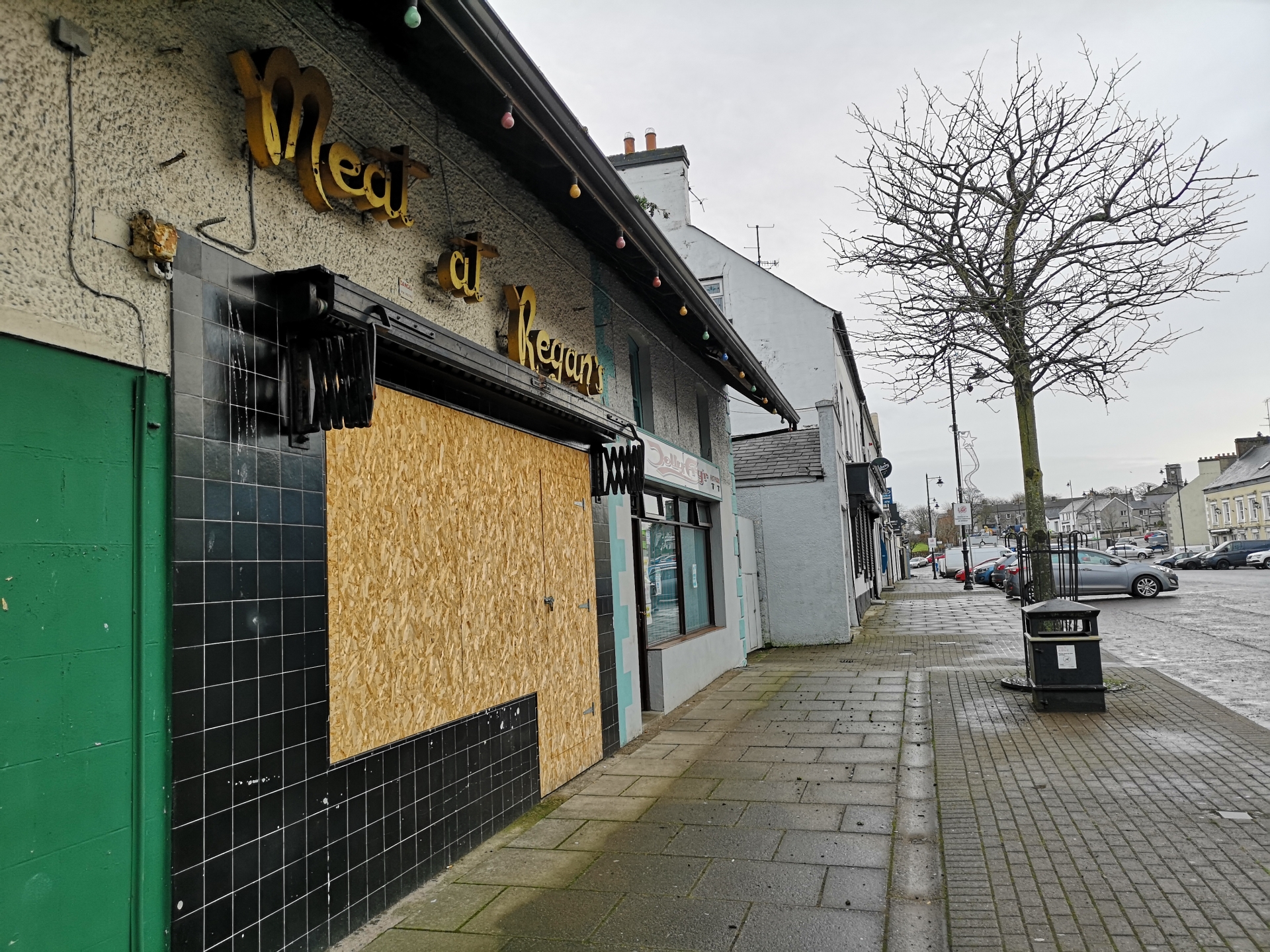 Traffic flows as usual, and closed-up businesses are unfortunately not unusual in rural Irish towns.