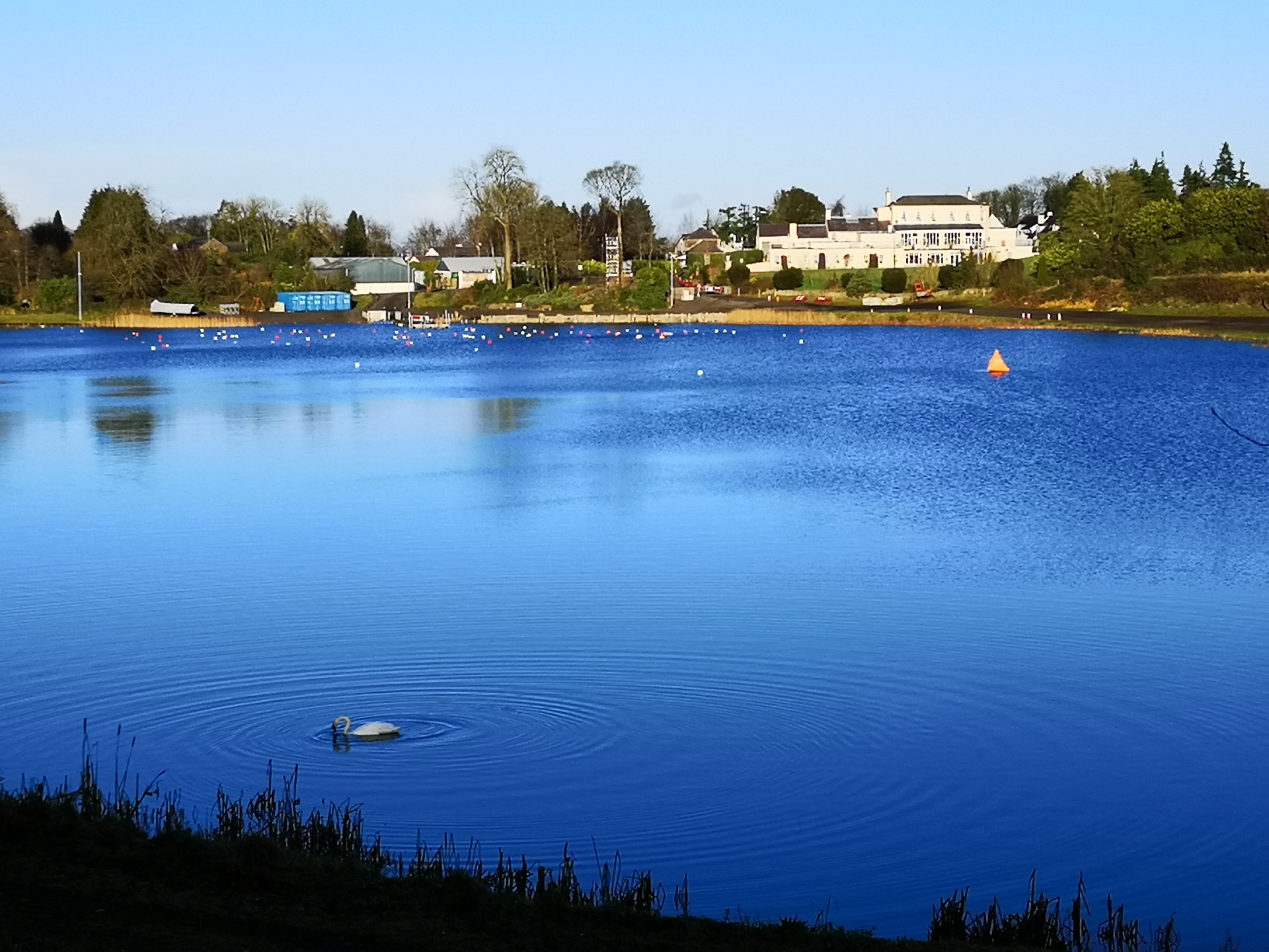 Saturday afternoon. In the winter sun, Manor House in Kilrea casts its long shadow on the 18th green.