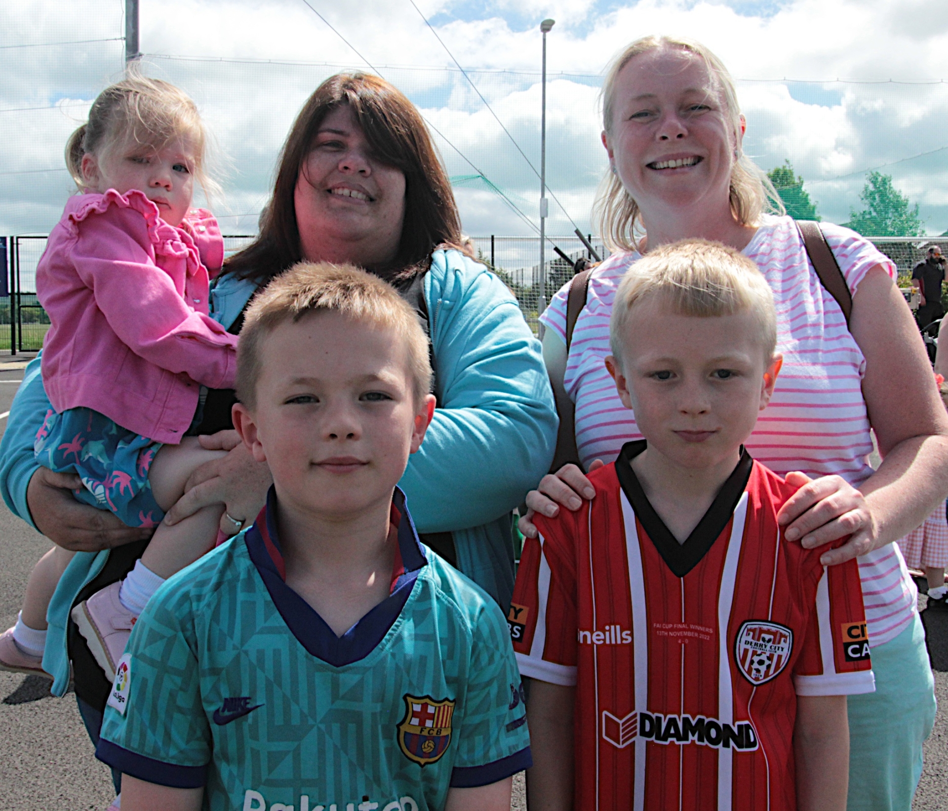 Emma and Karen pictured with the kids Emily, Kane and Tom.