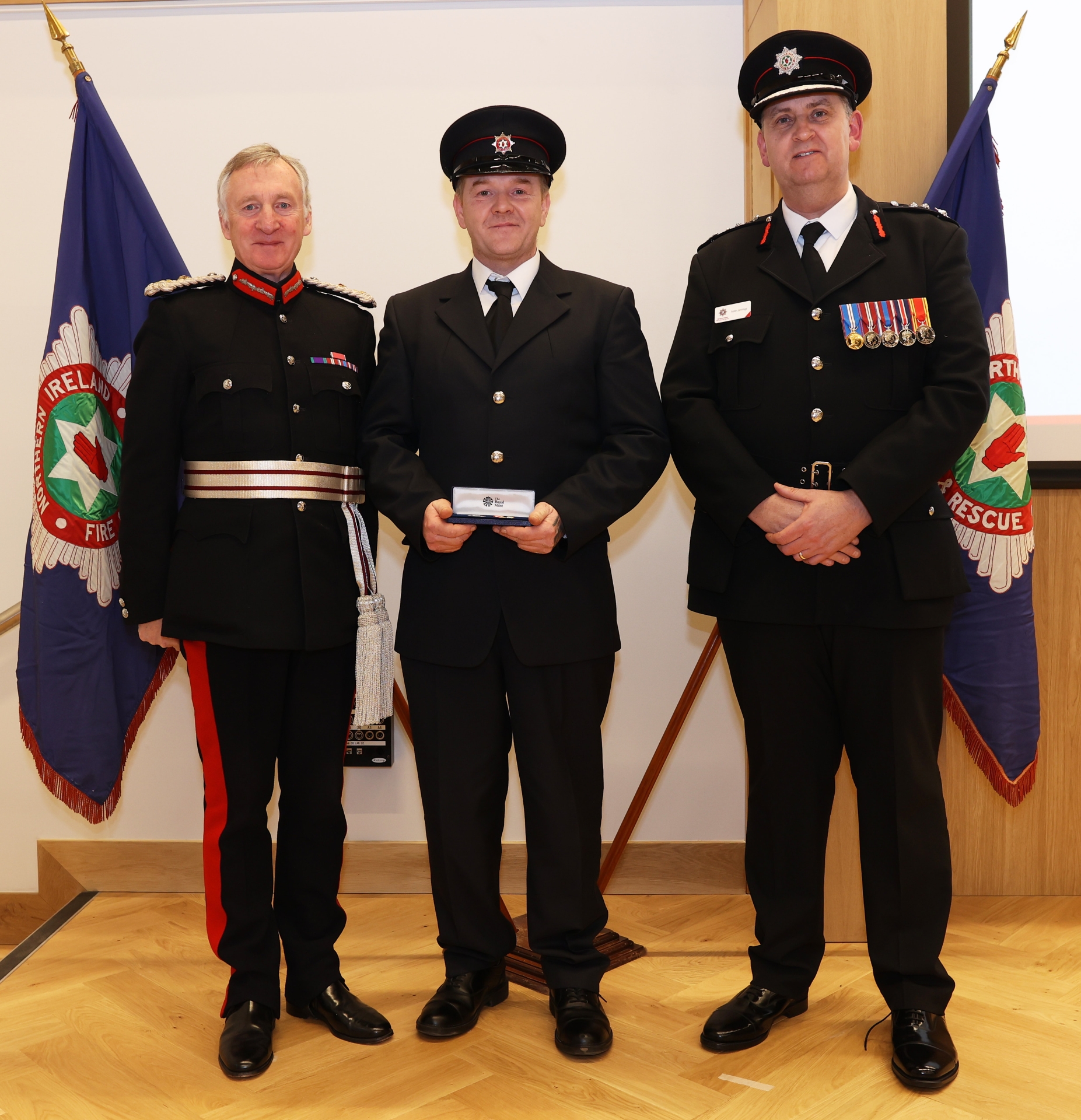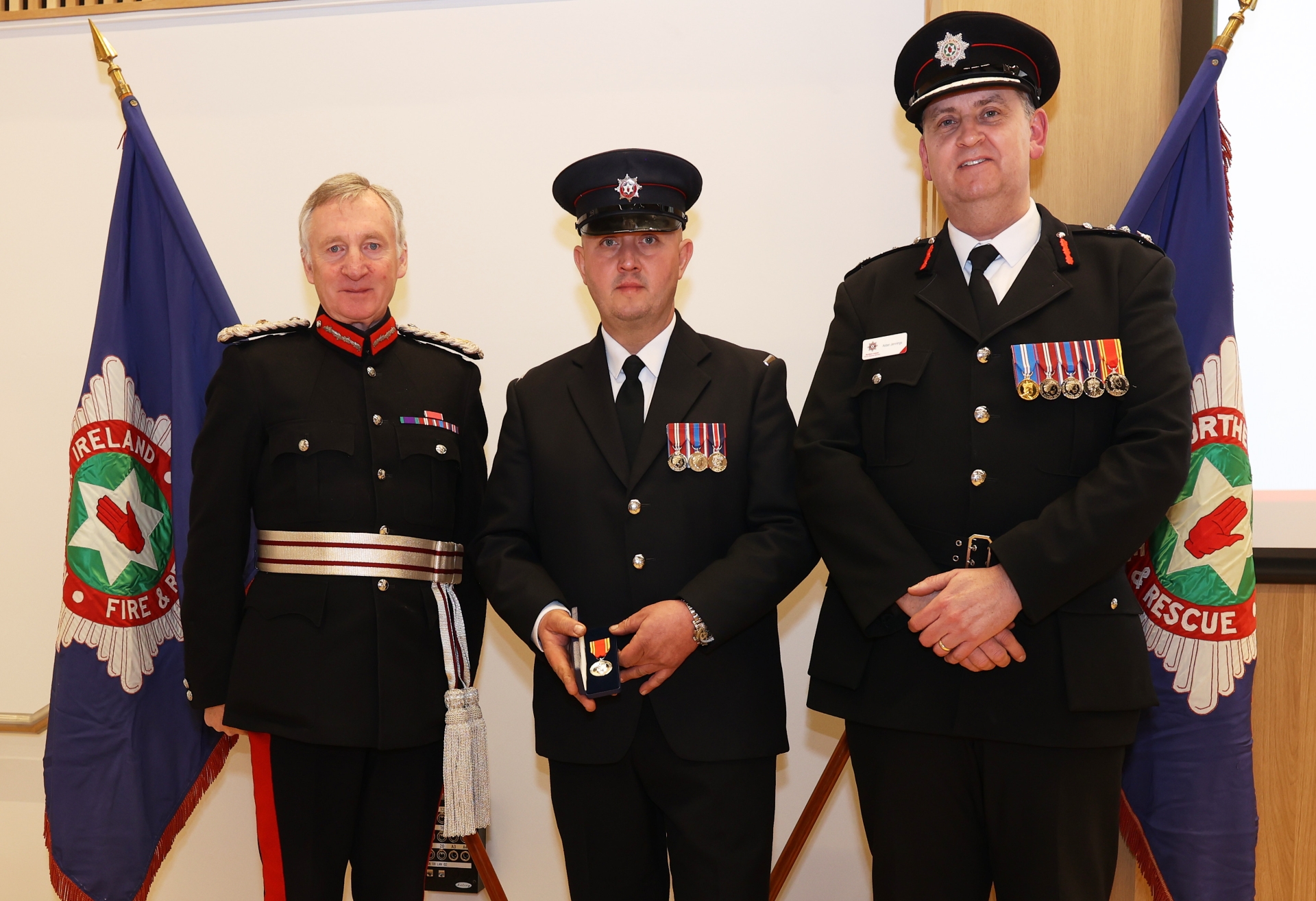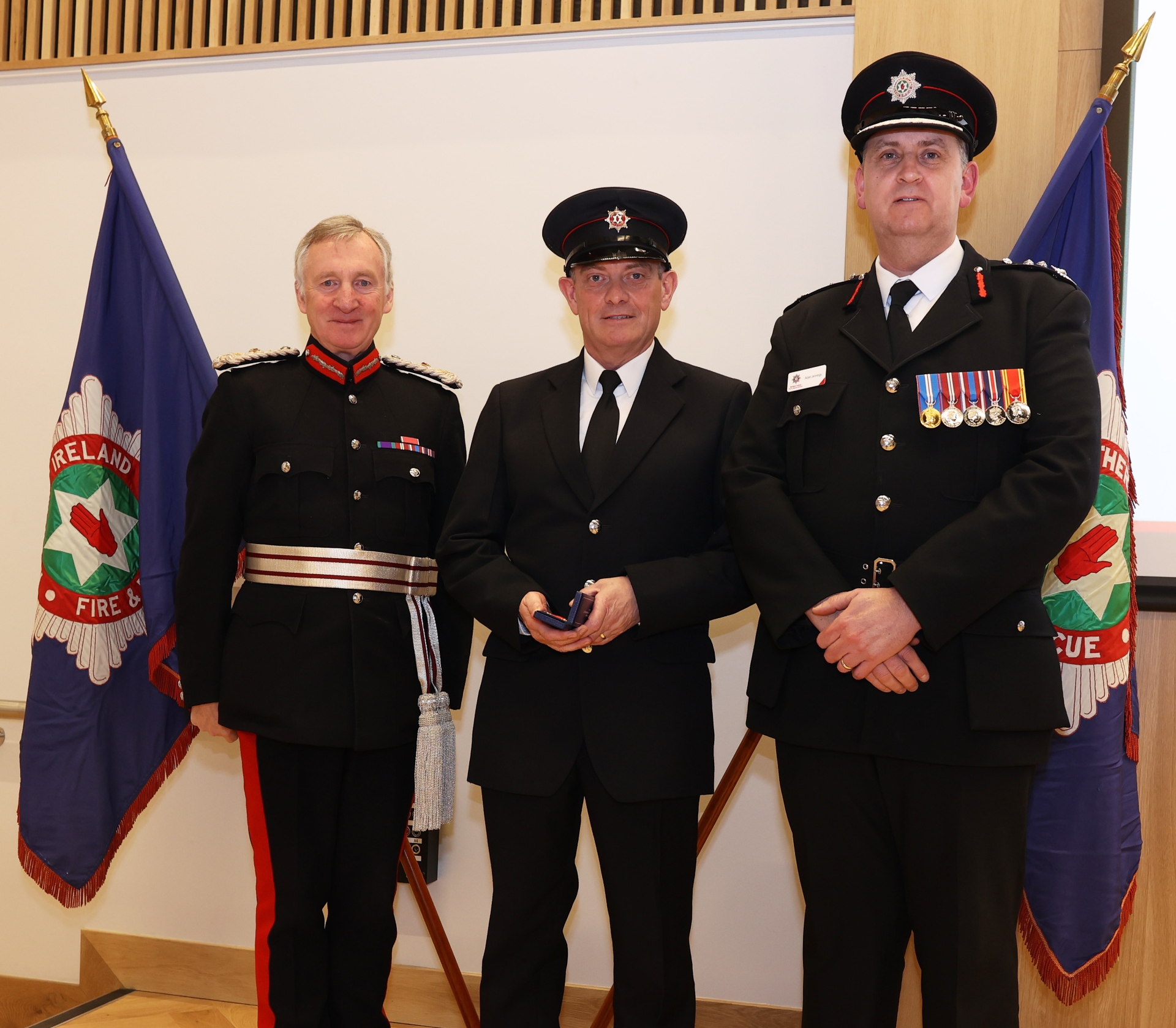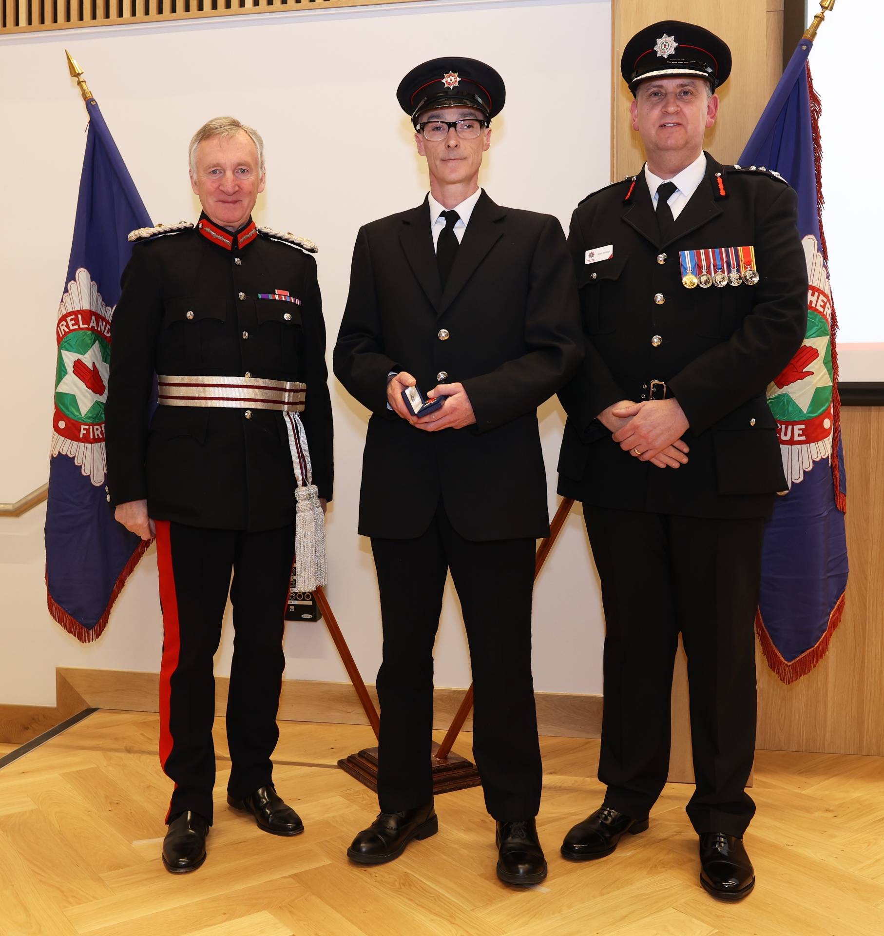 The awards recognise employees in both operational and support roles within NIFRS. The ceremony saw 91 operational and 5 support employees receive 20-year long service medals, 31 operational employees receive 30-year clasps, 1 operational employee receive 40-year clasp and 1 support employee receive the 40 year medallion award.