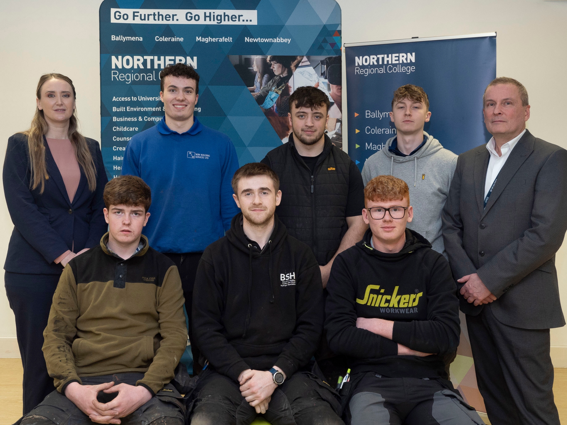 Plumbing (Back Row left to right): Rachel Dorovatas, Director of Industry Training and Support at CITB NI, Daniel Nicholson, Adam Barron, Dean Patton and Patrick Wallace, Principal Lecturer Traineeship at Northern Regional College