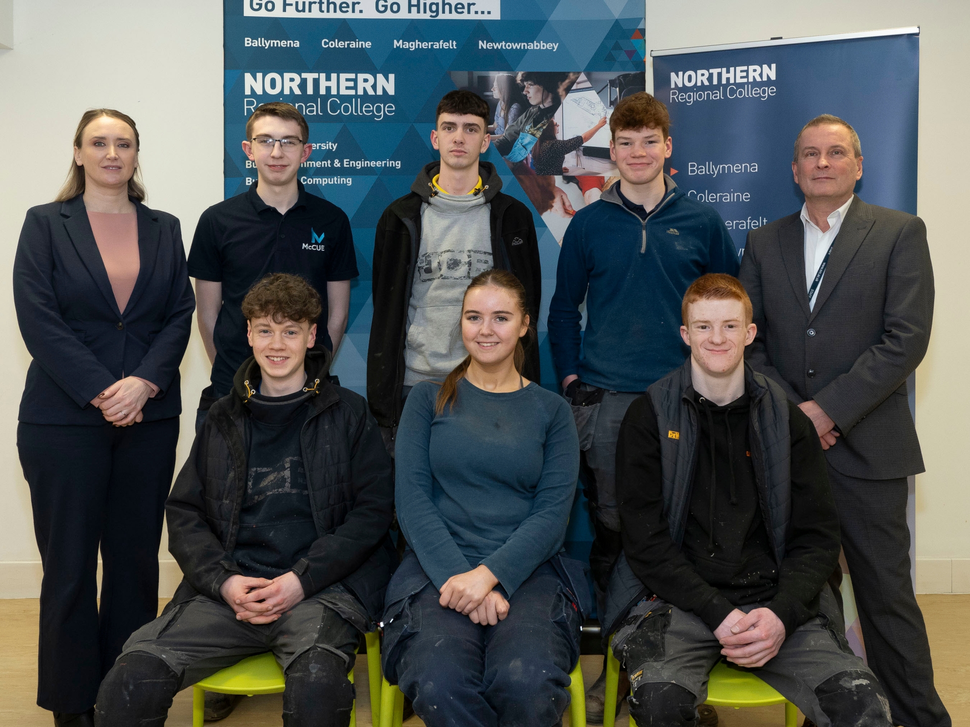 Bench Joinery: (left to right back row) Rachel Dorovatas, Director of Industry Training and Support at CITB NI, Mark Woods, Ethan Scates, Charlie Fleck and Patrick Wallace, Principal Lecturer, Traineeships at Northern Regional College.