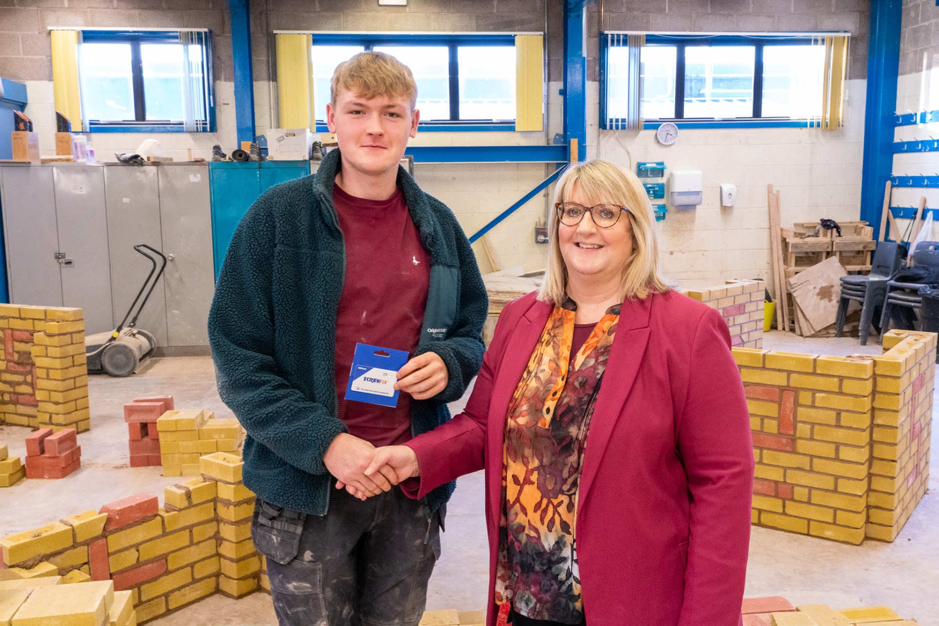 1st place Brickwork student Daniel Beckett pictured with Gayle Beckett, CITB NI Project Manager at the College’s annual inter-campus heats of Skillbuild NI 2025