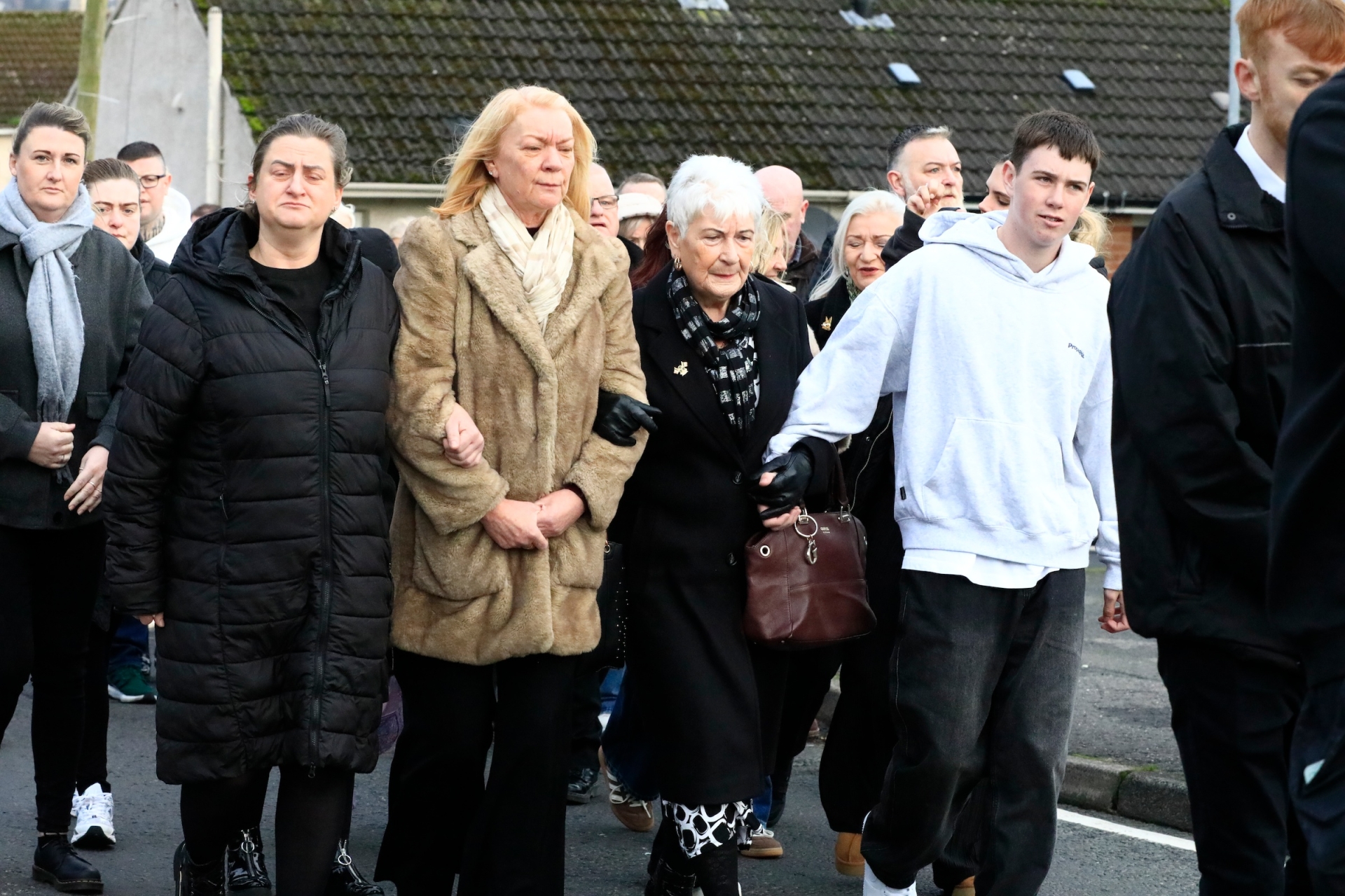 ABOVE: The family of former IRA hunger striker Brendan McLaughlin's following his coffin draped in the Tricolour from his home in the Top of the Hill to the Church of the Immaculate Conception, for Requiem Mass on Thursday morning. (Photo - Tom Heaney, nwpresspics)
