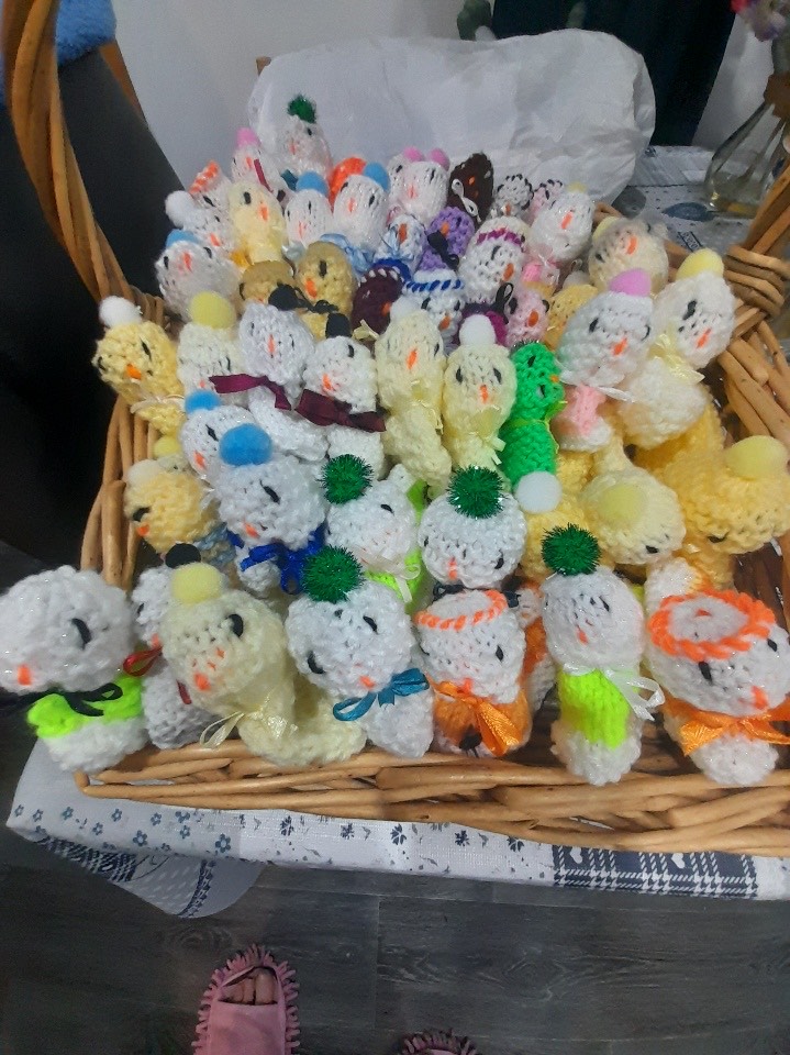 The ‘Knit and Natter’ members are hoping to knit hundreds of chicks in an effort to raise vital funds for the charity. Drummullan woman Mary Quinn has already helped them on their way by knitting 120 chicks (below) in a variety of colours.