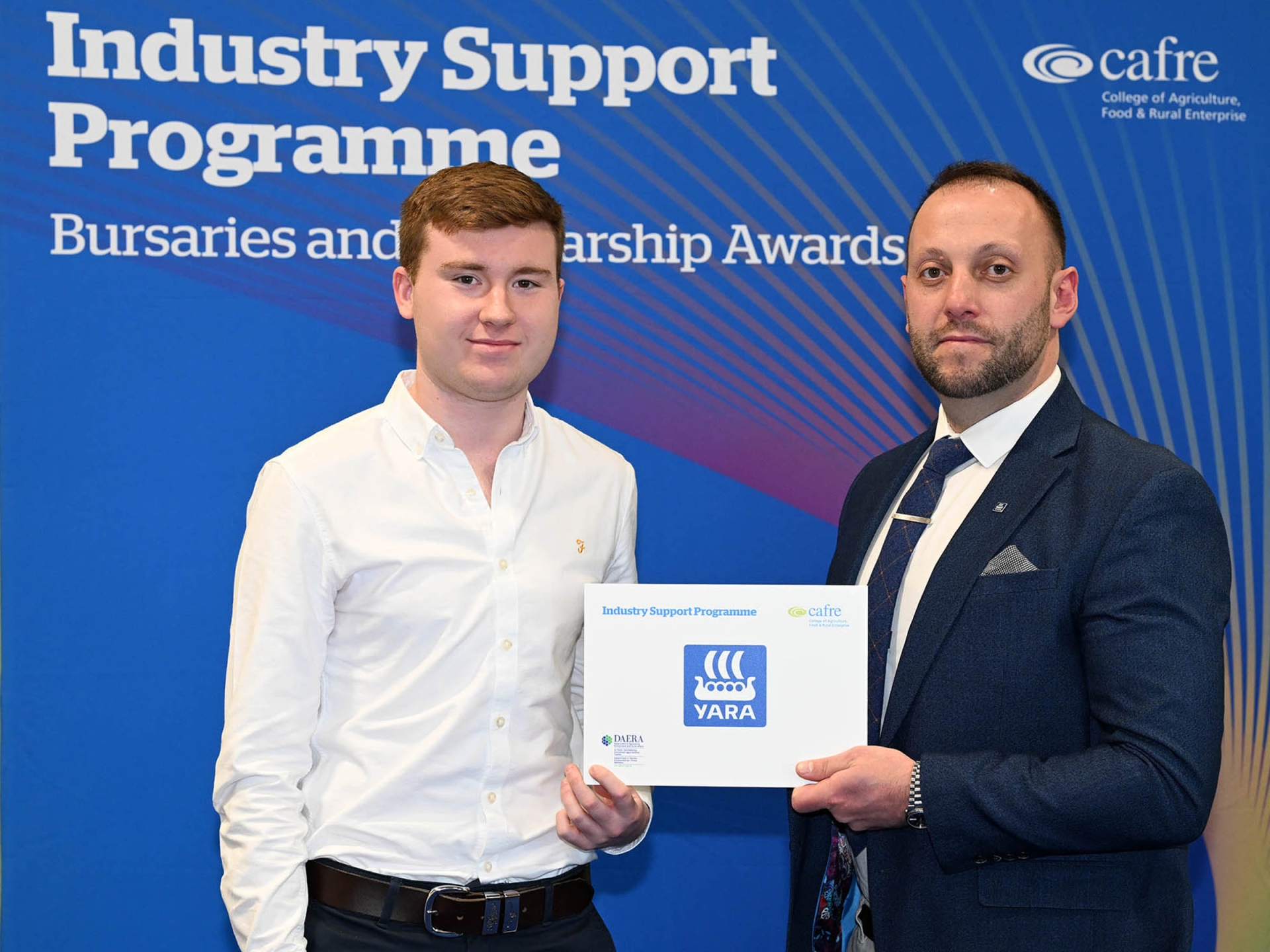 Fearghal McErlean (pictured below) from Derry was presented with a Bursary from Yara. Fearghal is studying for a BSc (Hons) Degree in Agricultural Technology.