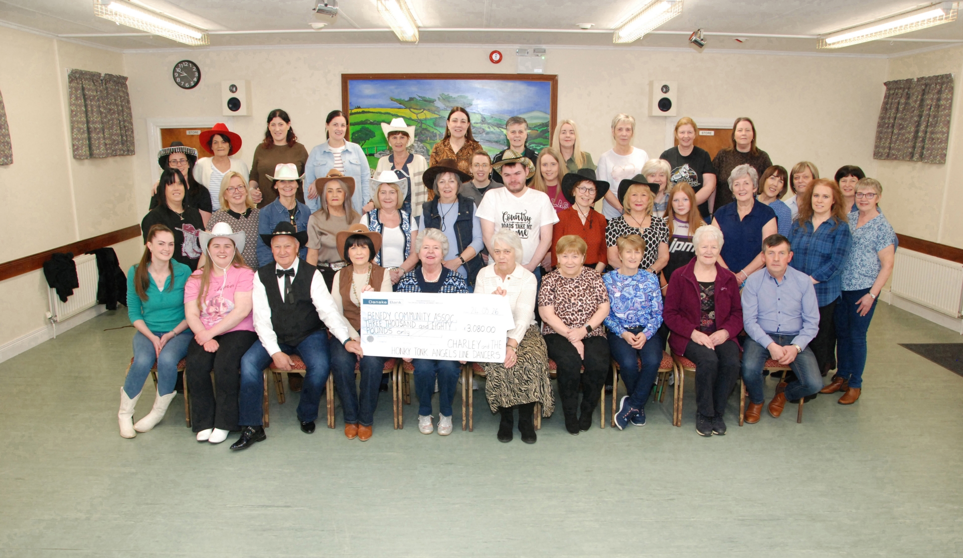 Benedy Community Association Chairperson Sabina O'Kane and the committee members received a cheque for £3,080 from Charley and The Honky Tonk Angels Line Dancers recently.