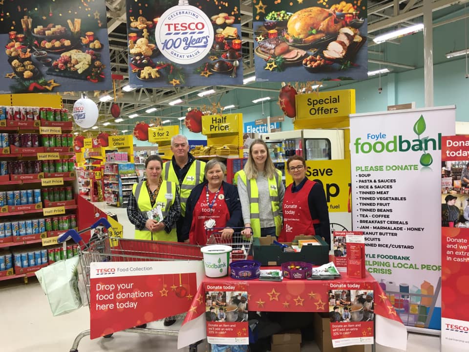 Collection points are at Tescos and Sainsbury's on the Strand Road, businesses also collect, there are appeals on Facebook and food can also be donated directly to the Food Bank.