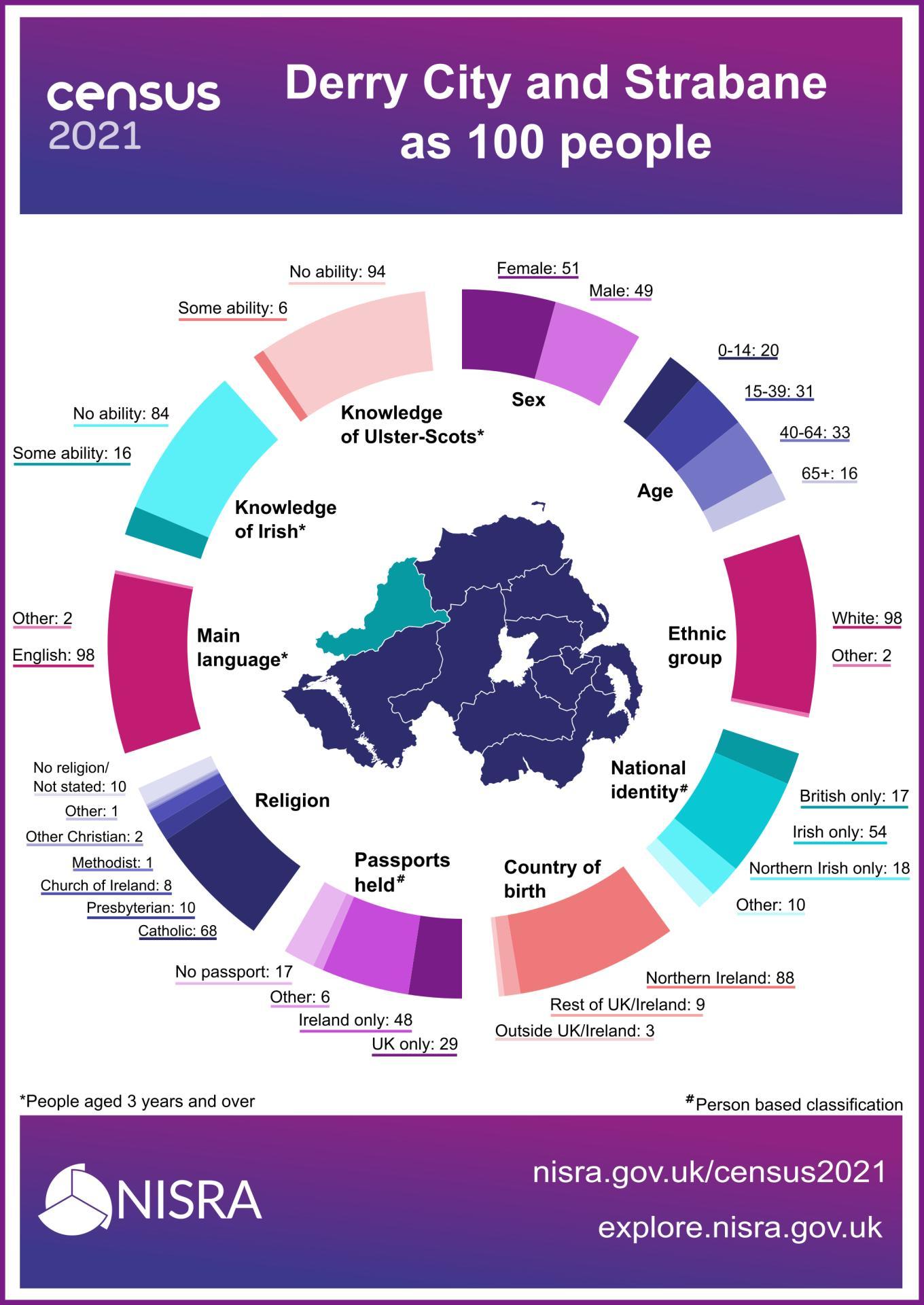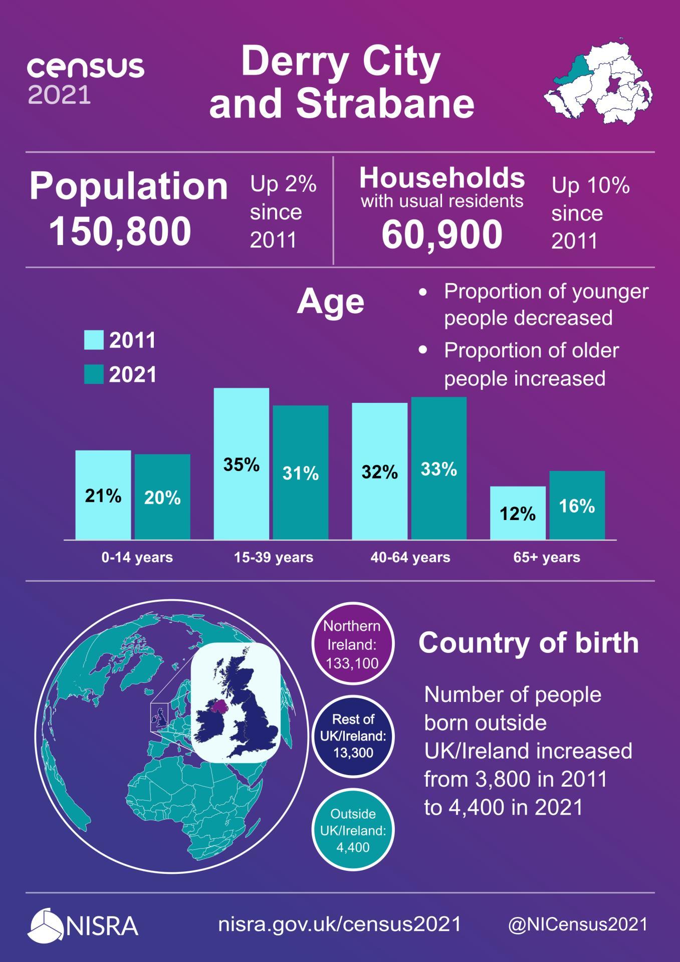 Derry City and Strabane recorded a 2% rise in population since the 2011 census, below the overall Northern Ireland figure of 5%.