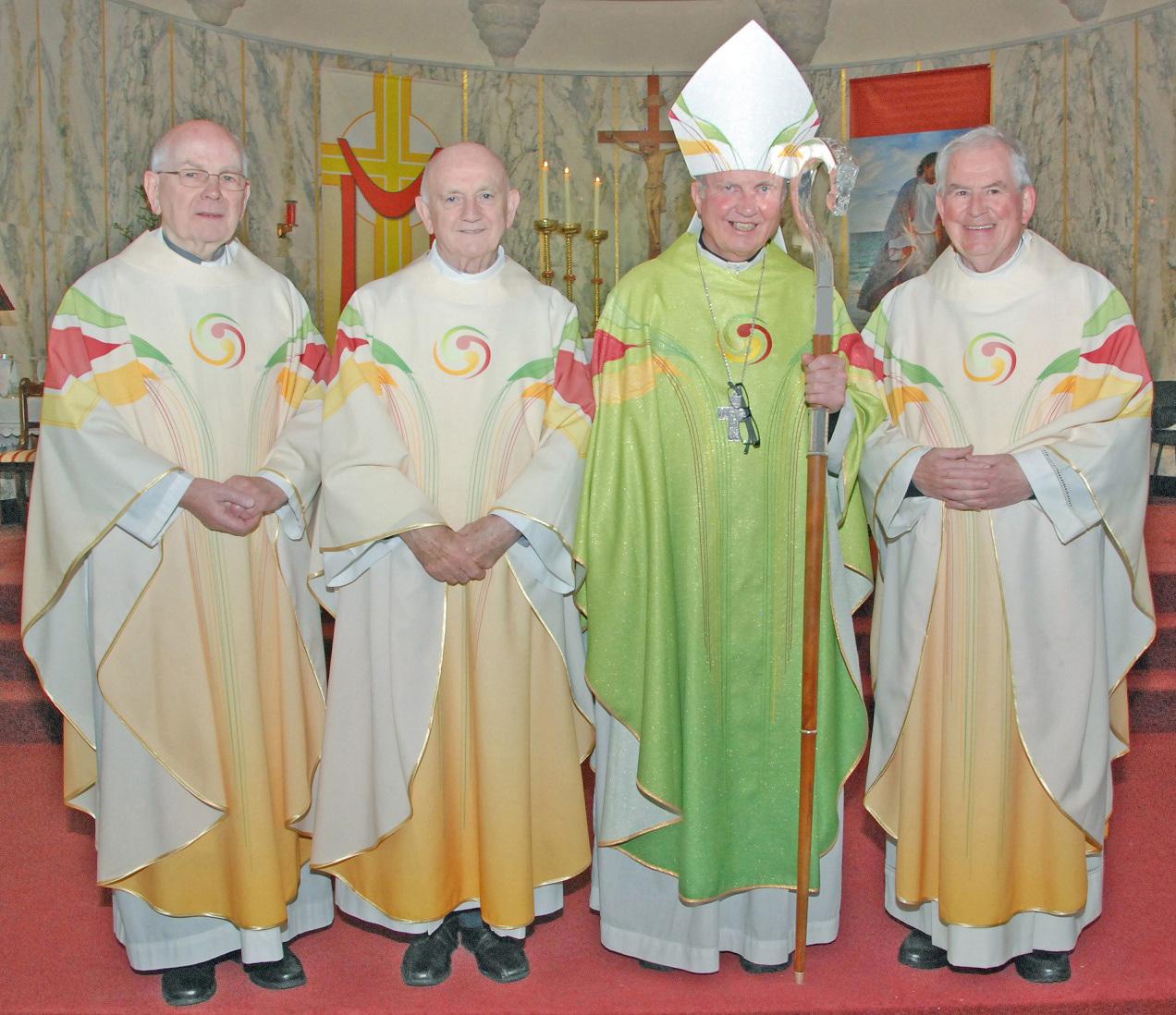 ABOVE: Fr. Peter McLaughlin, Fr. Brian Brady and Fr. Seamus Kelly P.P. with Bishop of Derry Donal McKeown