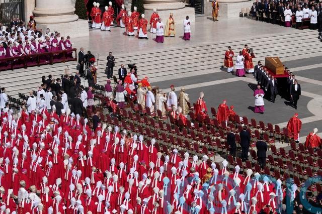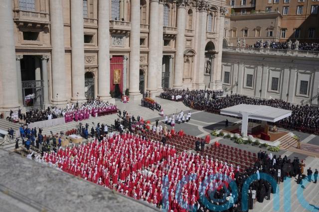 Some 55 heads of state, 14 heads of government and 12 reigning monarchs joined mourners for the open-air service in front of St Peter’s Basilica.