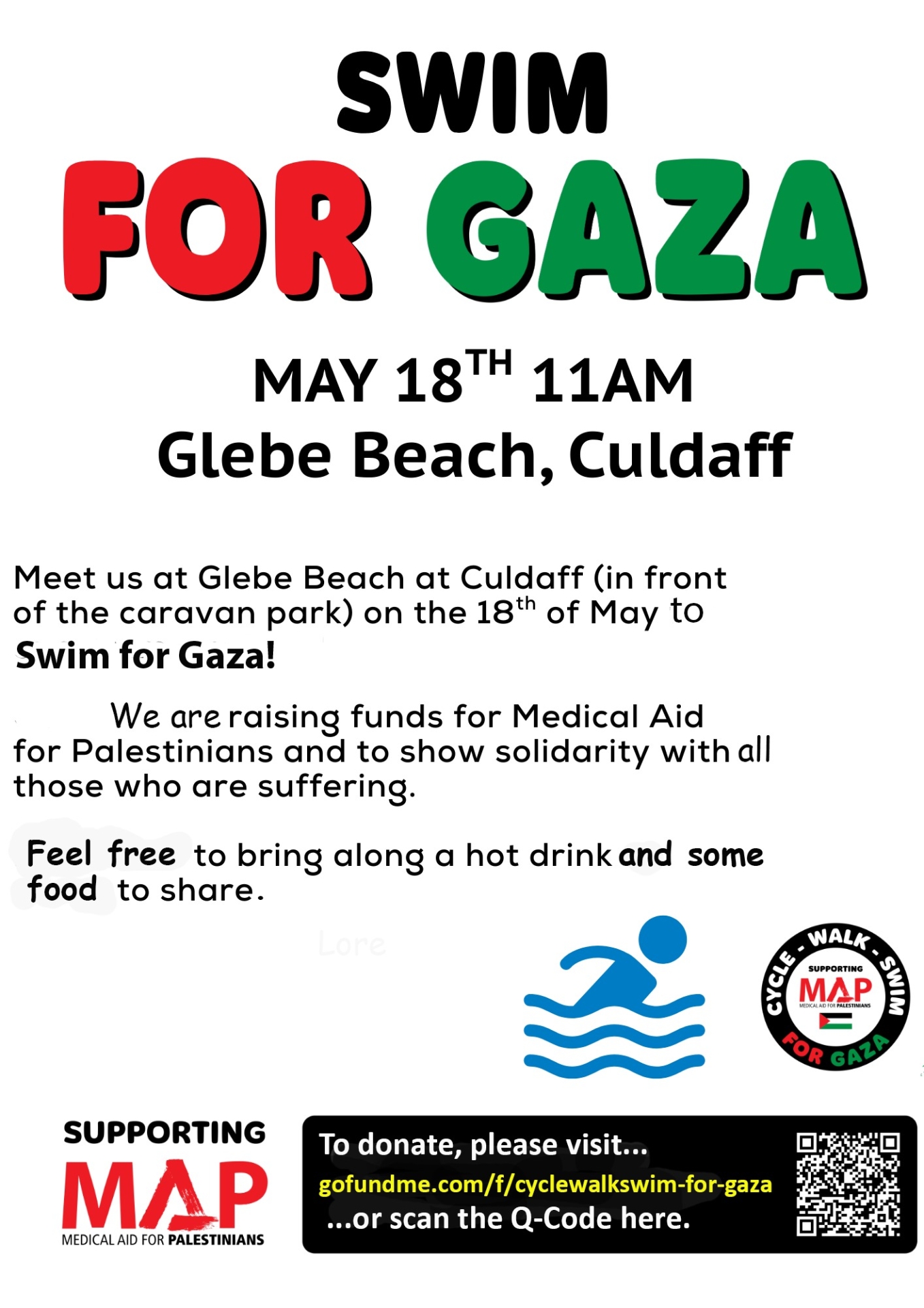 Donations can be made on the group's Go Fund me page: Cycle-Walk-Swim for Gaza.