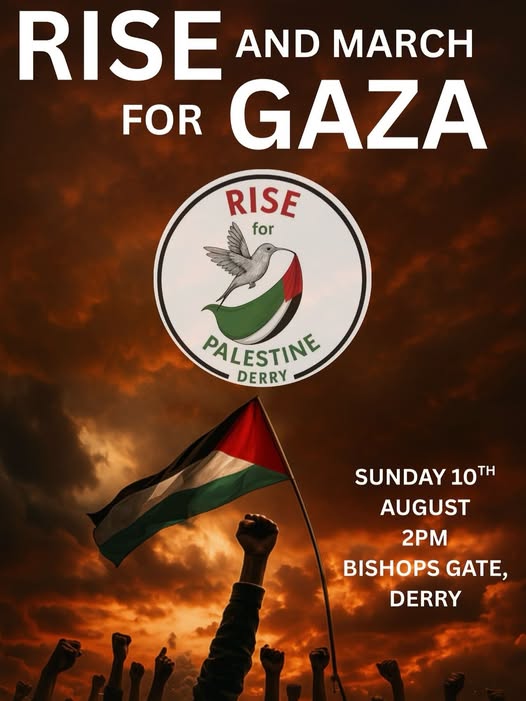 “Derry will not stay silent. We will not look away. On Sunday, we are calling for the community to fill the streets of Derry for Gaza. Your presence matters.