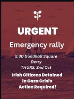 "Here in Derry at 3pm in Waterloo Place, we will be continuing our weekly action in defence of the right to protest. As in other weeks, civil rights activists from the 1960s will be joined by a (slightly) younger generation in refusing to accept the idea that taking direct action to oppose genocide is a crime or could be described as 'terrorism'.