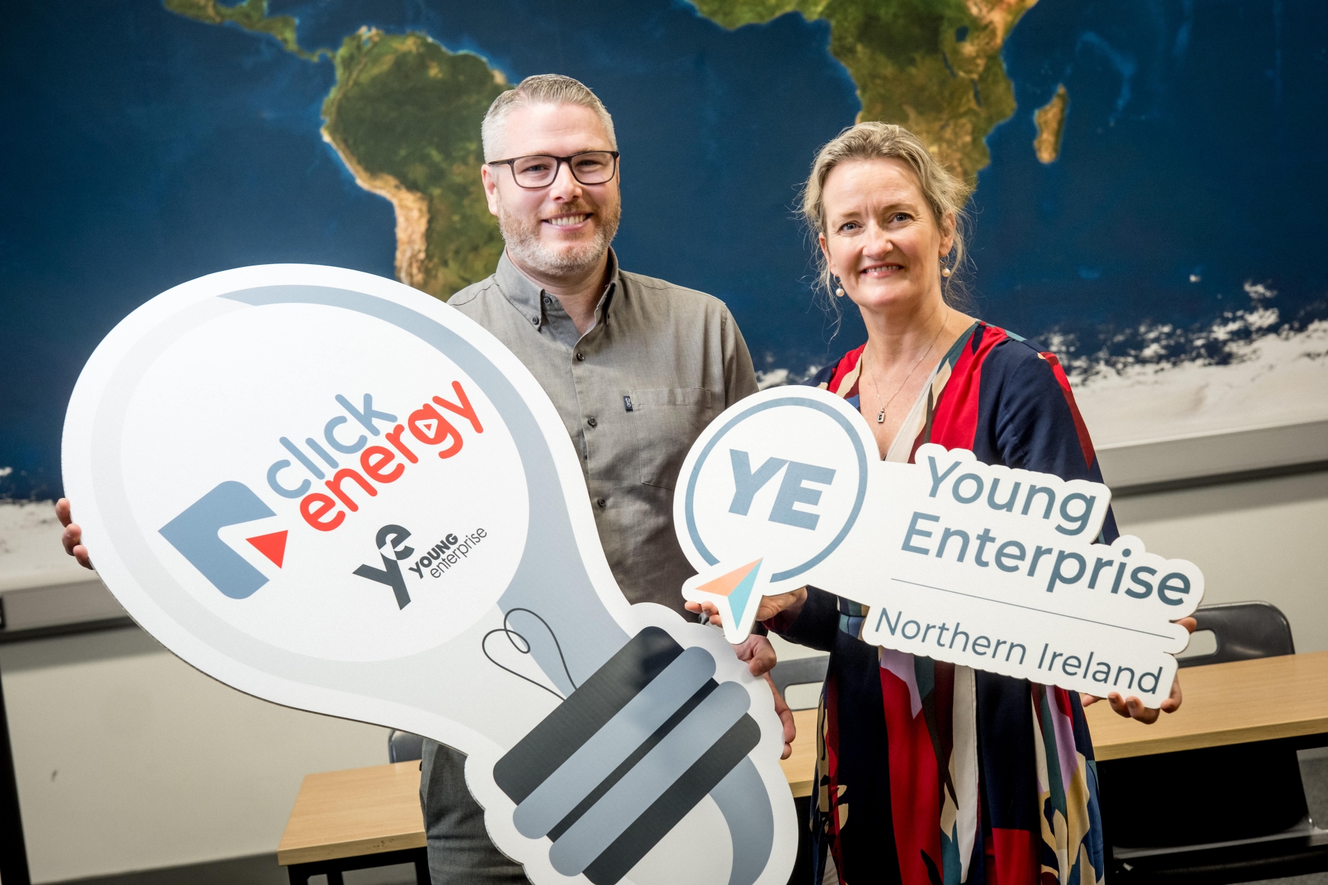 Click Energy Managing Director, Andy Porter, alongside Young Enterprise Northern Ireland Chief Executive, Carol Fitzsimmons MBE.
