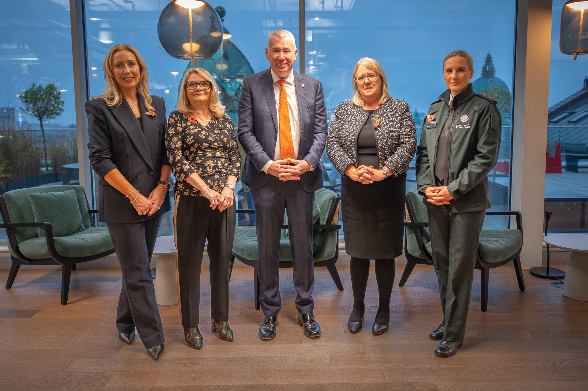 Left to right, Caitroina McCusker, PwC UK NI Market Senior Partner; Sarah Mason, Chief Exec Women’s Aid Federation; Chief Constable Jon Boutcher; Lady Chief Justice The Right Honourable Dame Siobhan Keegan and Chief Superintendent Gillian Kearney.