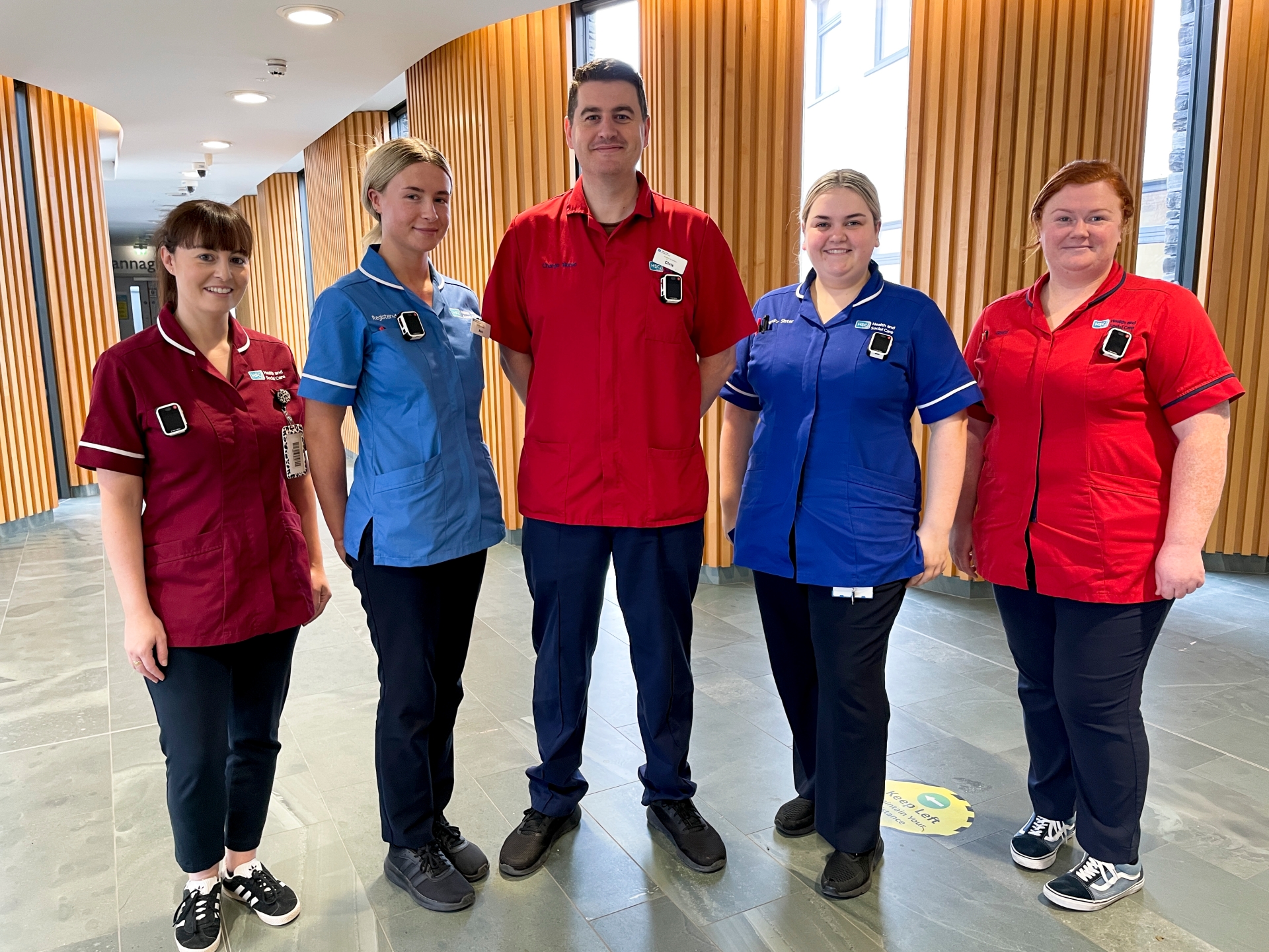 Healthcare staff at Altnagelvin Emergency Department pictured wearing body worn cameras as part of a three month trial introduced by the Western Trust.