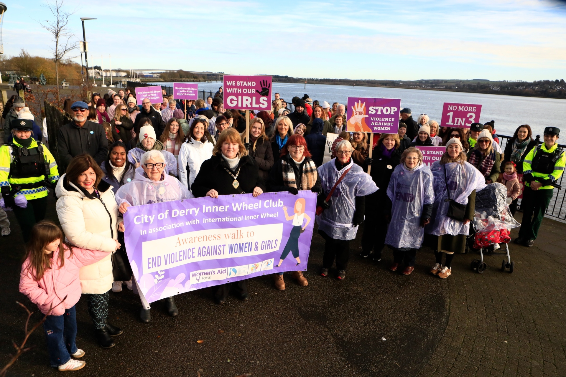 The Deputy Mayor, Alderman Niree McMorris, attended the Awareness Walk to End Violence Against Women & Girls along Derry’s Quay on Sunday, reaffirming the Council’s strong commitment to ensuring safer homes, workplaces, and public spaces for all women and girls.
